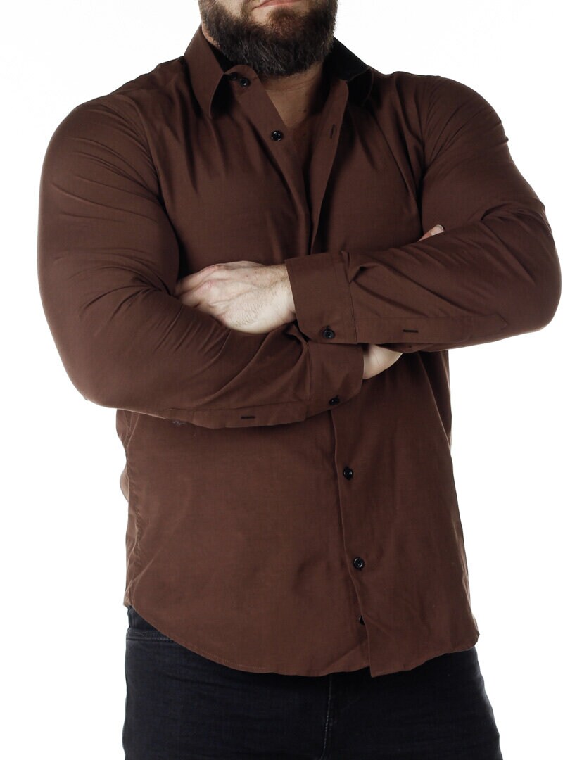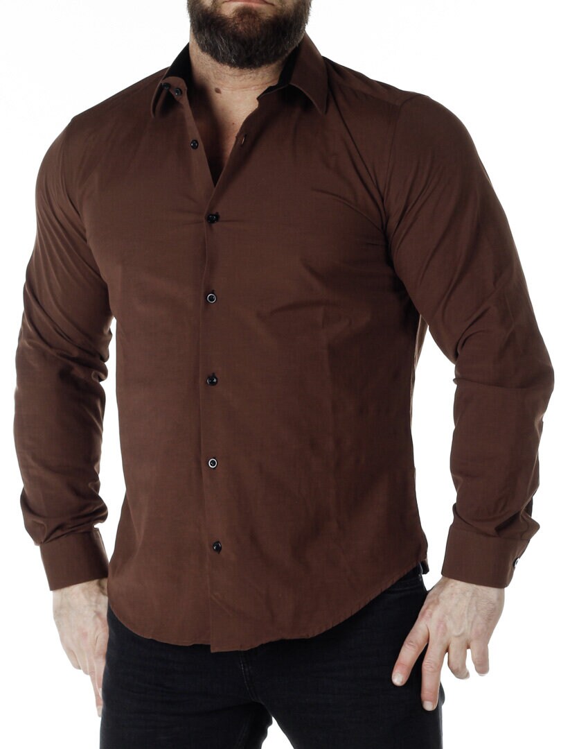 Bomullsskjorte i en behagelig modell som er lett stretchy. Brun bunn med knapper, innerkrage og mansjetter i kontrastfarge. Slankere modell med avrundet linning nederst og forsterket krage som holder formen. Tilgjengelig i flere farger!