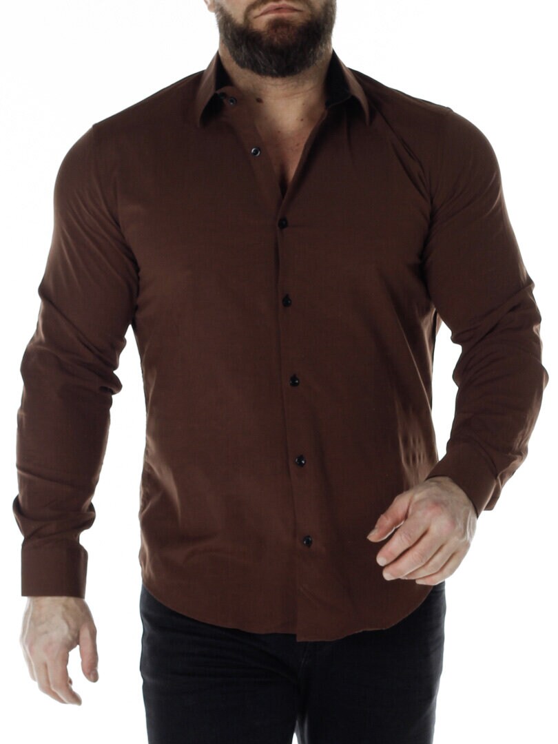 Bomullsskjorte i en behagelig modell som er lett stretchy. Brun bunn med knapper, innerkrage og mansjetter i kontrastfarge. Slankere modell med avrundet linning nederst og forsterket krage som holder formen. Tilgjengelig i flere farger!