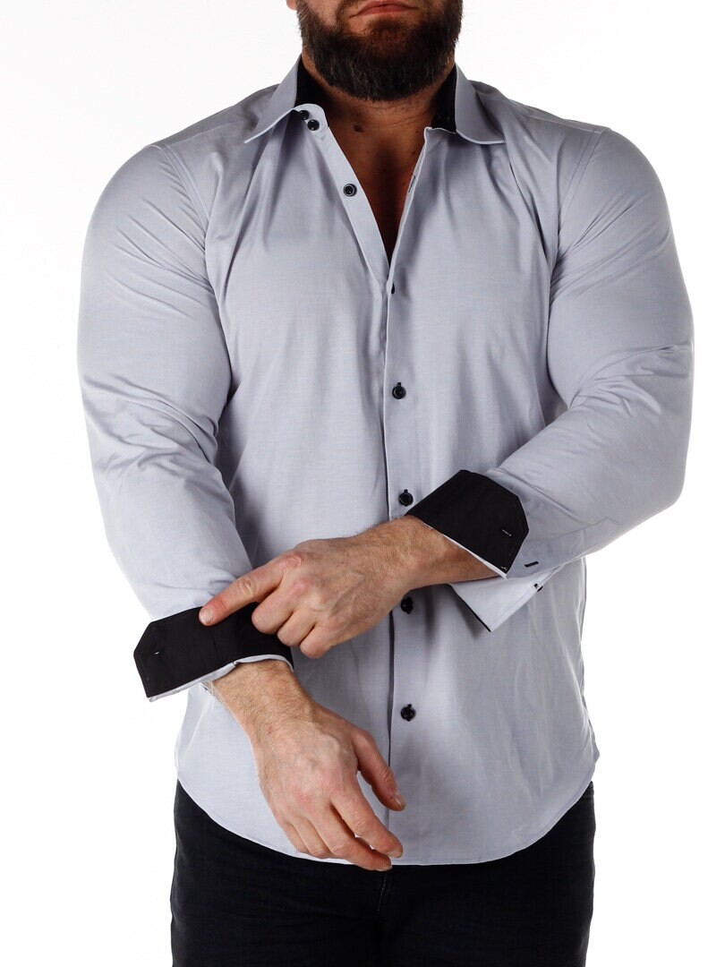 Bomullsskjorte i en behagelig modell som er lett stretchy. Grå base med knapper, innerkrage og mansjetter i kontrastfarge. Slankere modell med avrundet linning nederst og forsterket krage som holder formen. Tilgjengelig i flere farger!