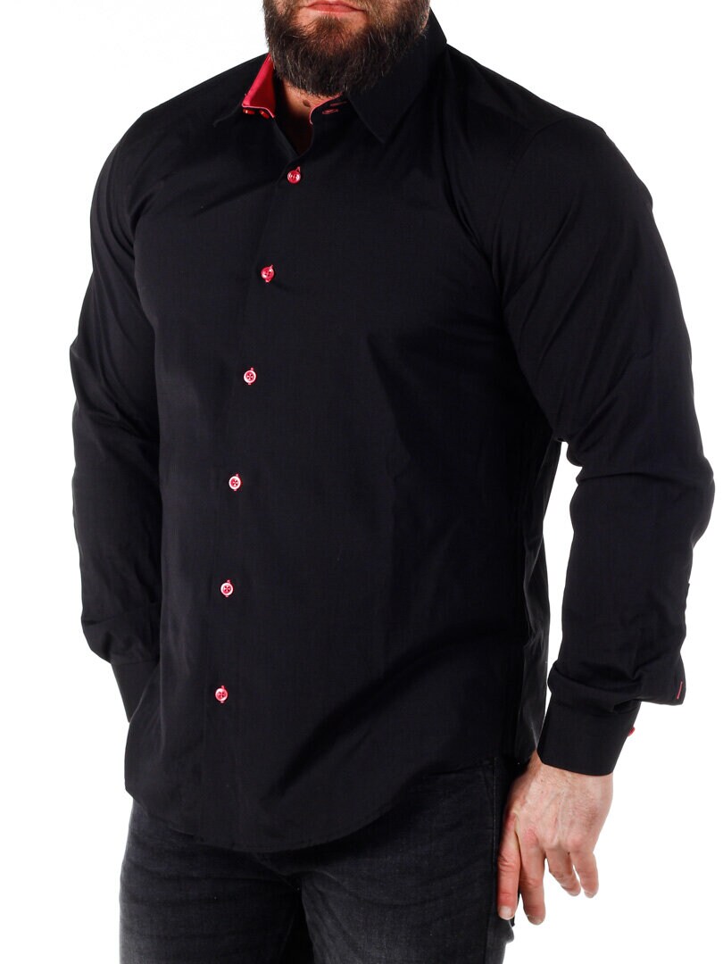 Bomullsskjorte i en behagelig modell som er lett stretchy. Sort base med knapper, innerkrage og mansjetter i kontrastfarge. Slankere modell med avrundet linning nederst og forsterket krage som holder formen. Tilgjengelig i flere farger!