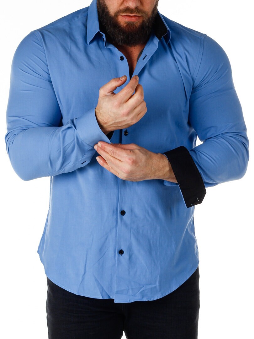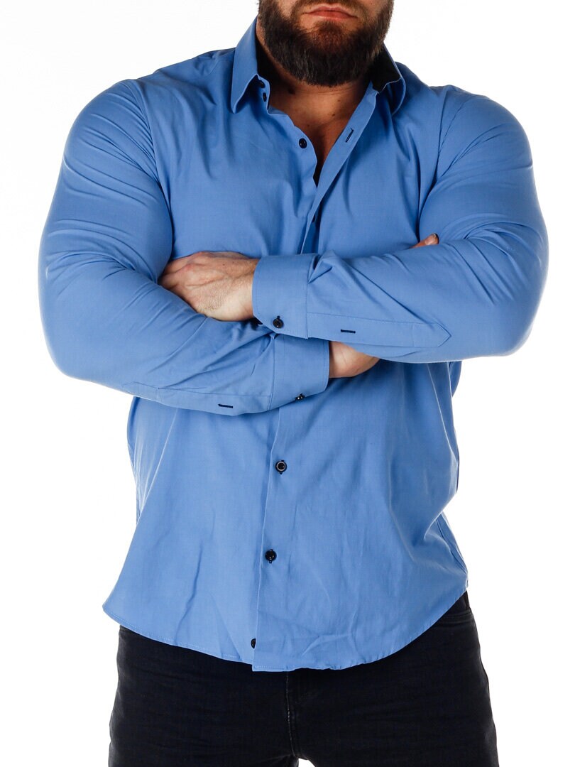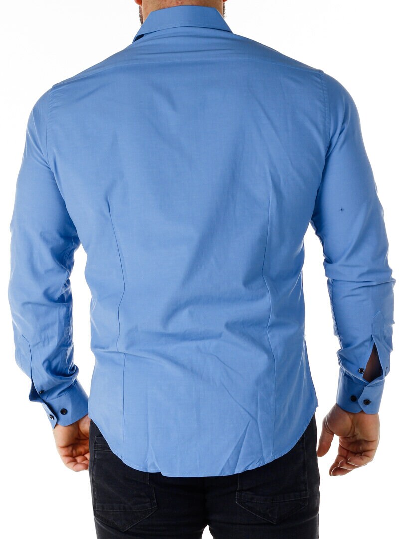 Bomullsskjorte i en behagelig modell som er lett stretchy. Blå base med knapper, innvendig krage og mansjetter i kontrastfarge. Slankere modell med avrundet linning nederst og forsterket krage som holder formen. Tilgjengelig i flere farger!