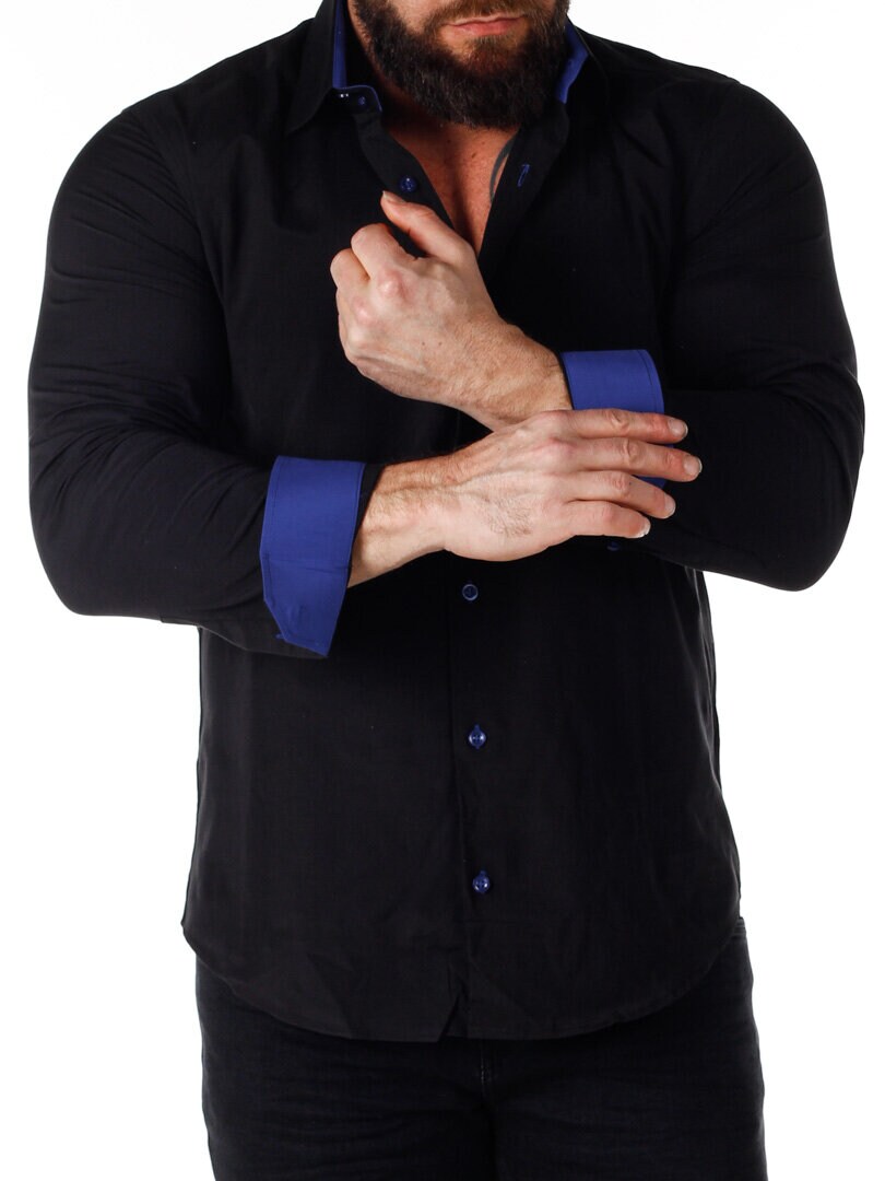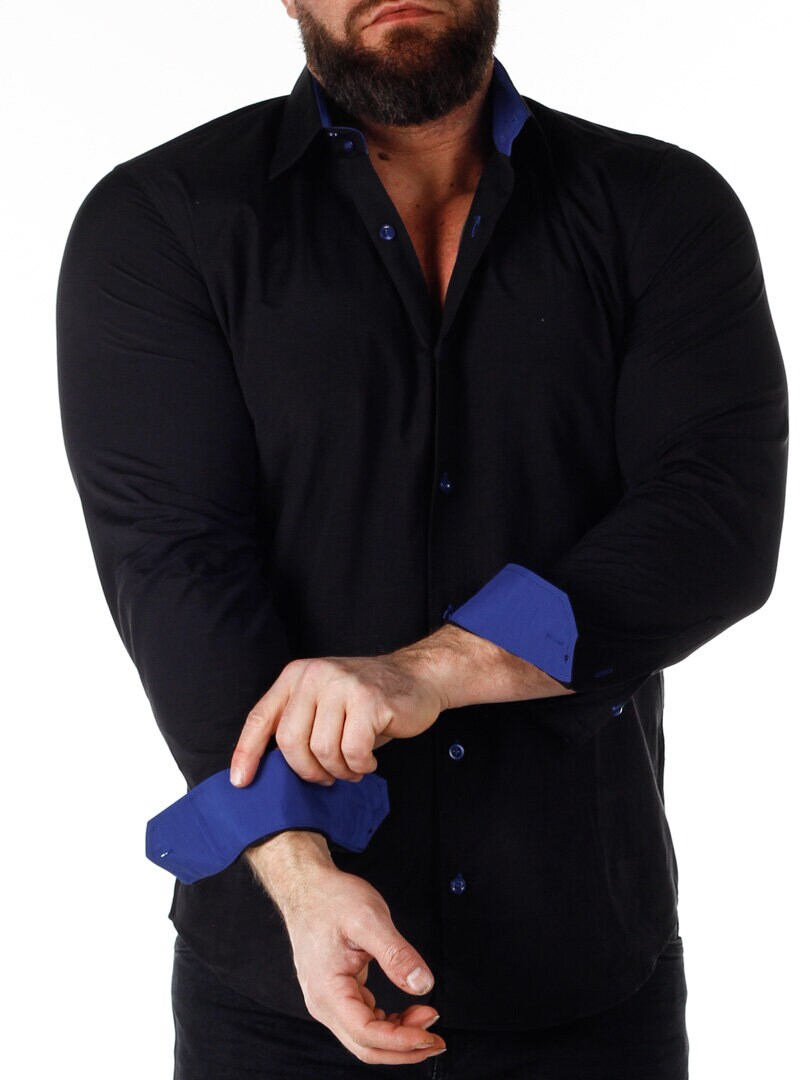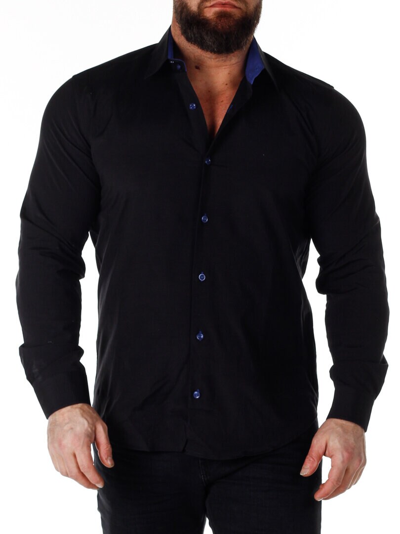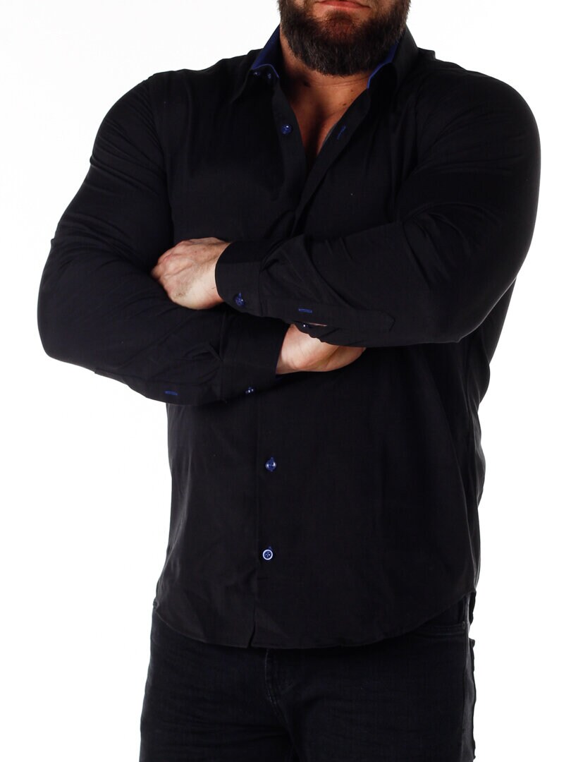 Bomullsskjorte i en behagelig modell som er lett stretchy. Sort base med knapper, innerkrage og mansjetter i kontrastfarge. Slankere modell med avrundet linning nederst og forsterket krage som holder formen. Tilgjengelig i flere farger!