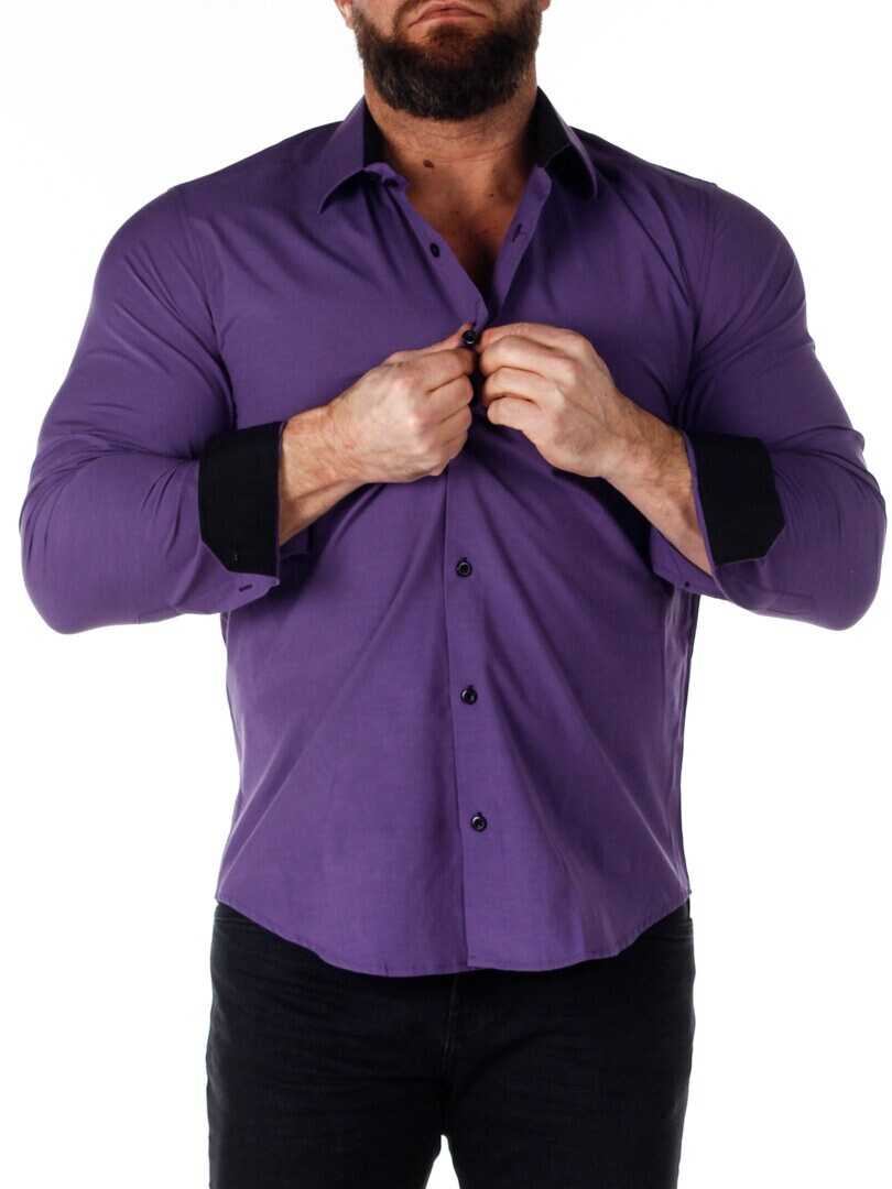 Bomullsskjorte i en behagelig modell som er lett stretchy. Lilla bunn med knapper, innvendig krage og mansjetter i kontrastfarge. Slankere modell med avrundet linning nederst og forsterket krage som holder formen. Tilgjengelig i flere farger!