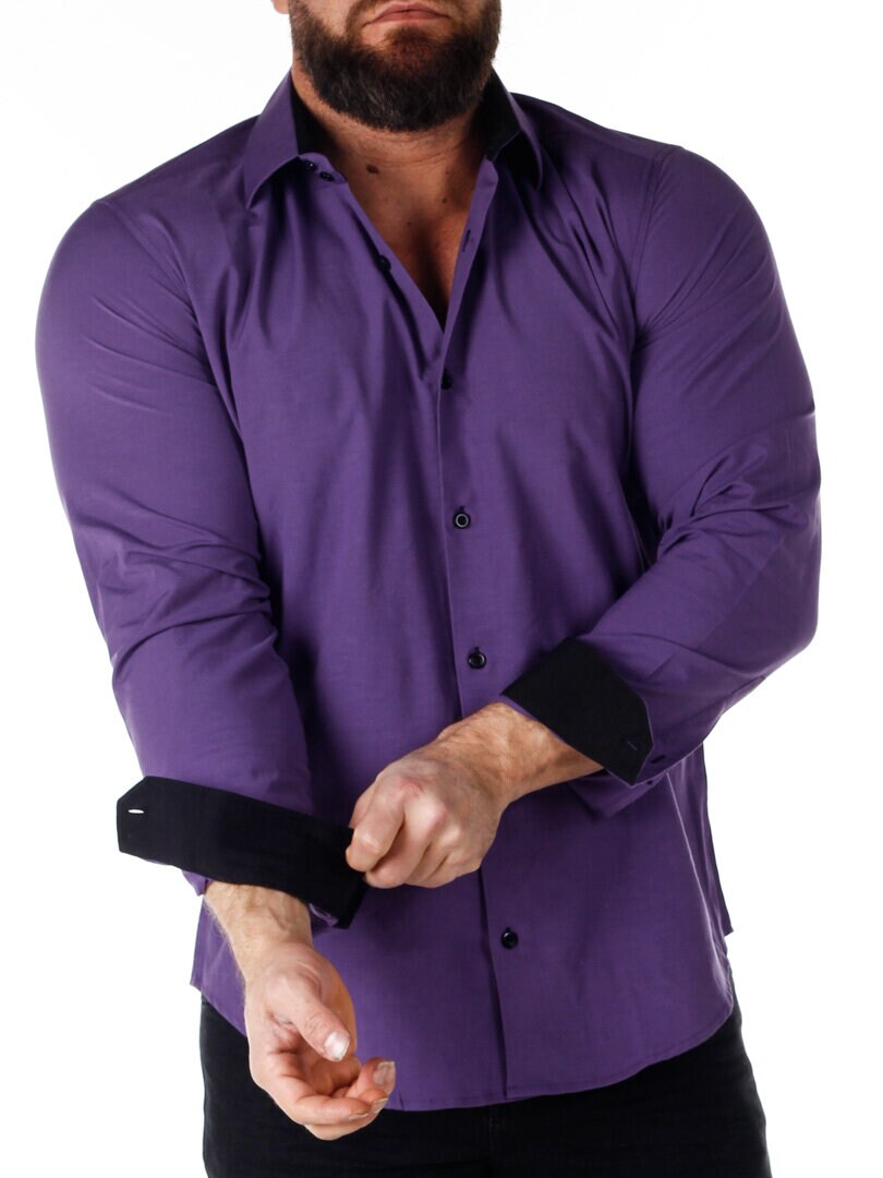 Bomullsskjorte i en behagelig modell som er lett stretchy. Sort base med knapper, innerkrage og mansjetter i kontrastfarge. Slankere modell med avrundet linning nederst og forsterket krage som holder formen.