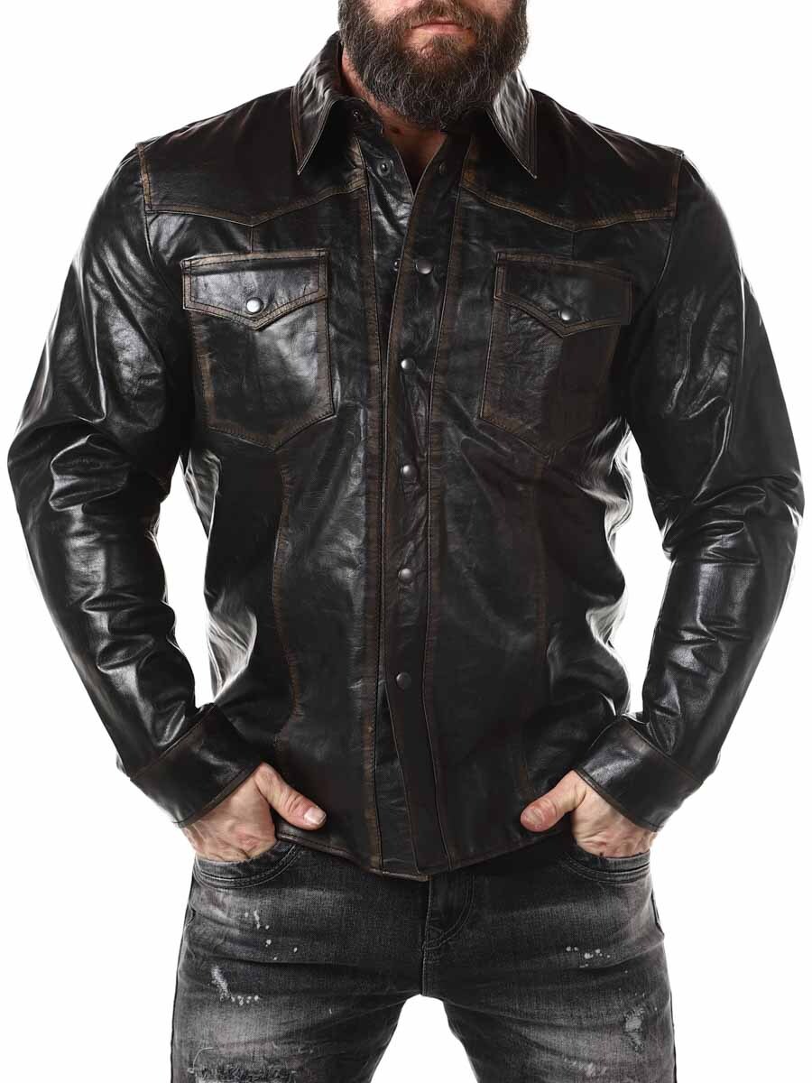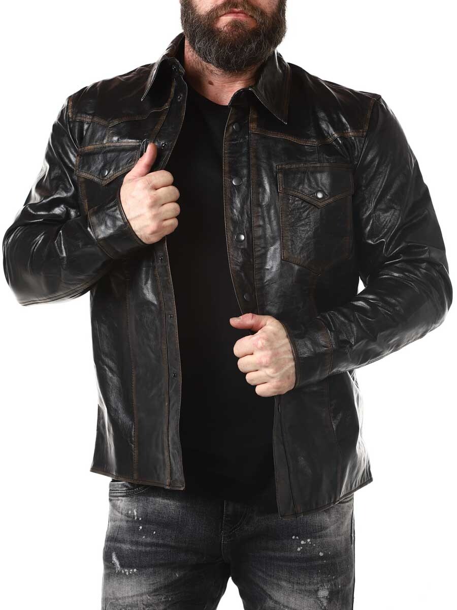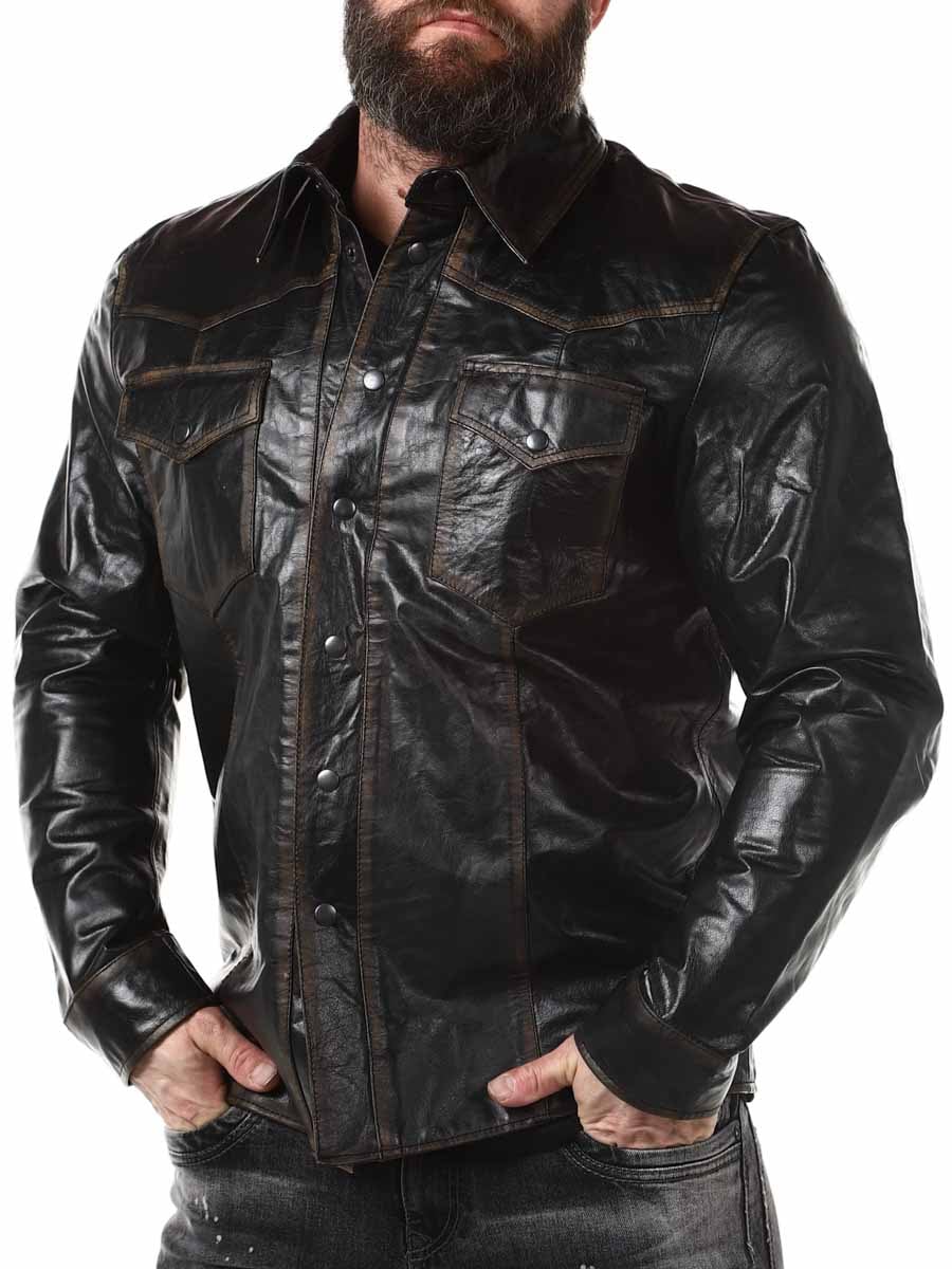Skjorte i 100% bøffelskinn, produsert i vintagestil for en mer autentisk følelse. Designet med trykknapper, to brystlommer og to innerlommer. Denne stilige toppen kan brukes som både skjorte og jakke!