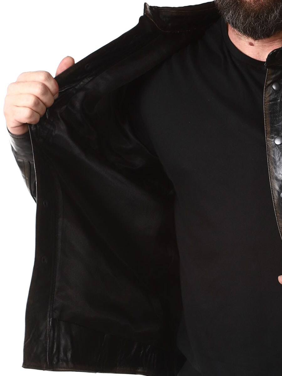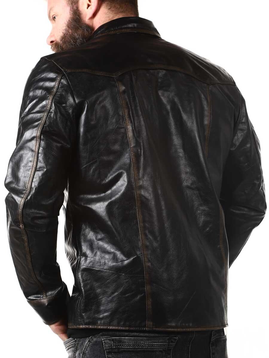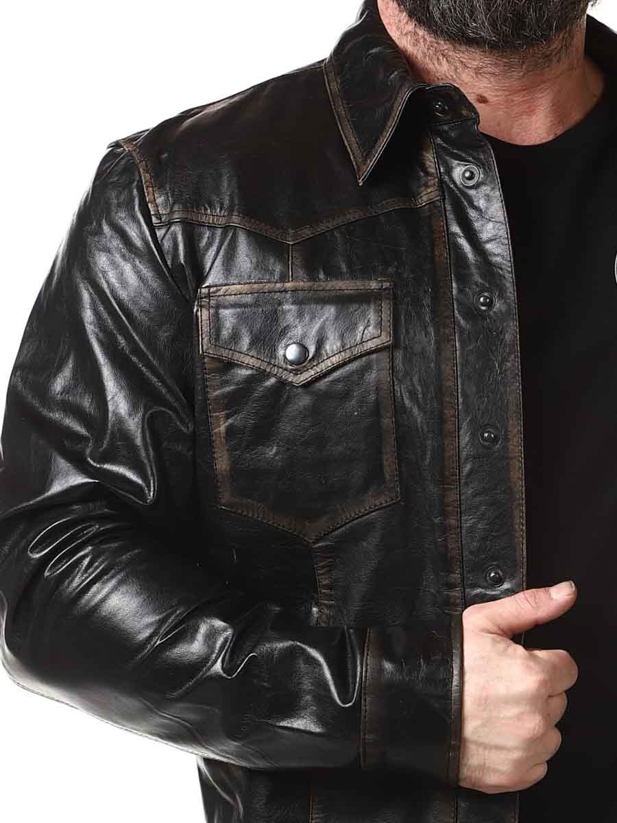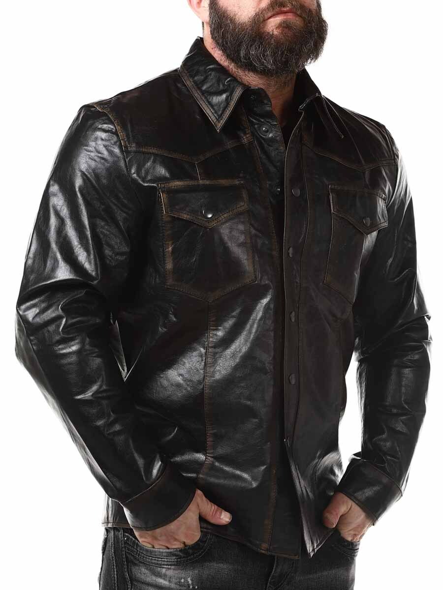 Skjorte i 100% bøffelskinn, produsert i vintagestil for en mer autentisk følelse. Designet med trykknapper, to brystlommer og to innerlommer. Denne stilige toppen kan brukes som både skjorte og jakke!