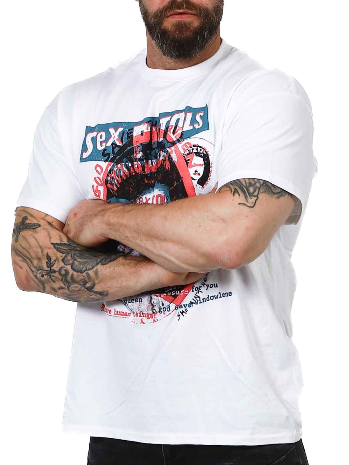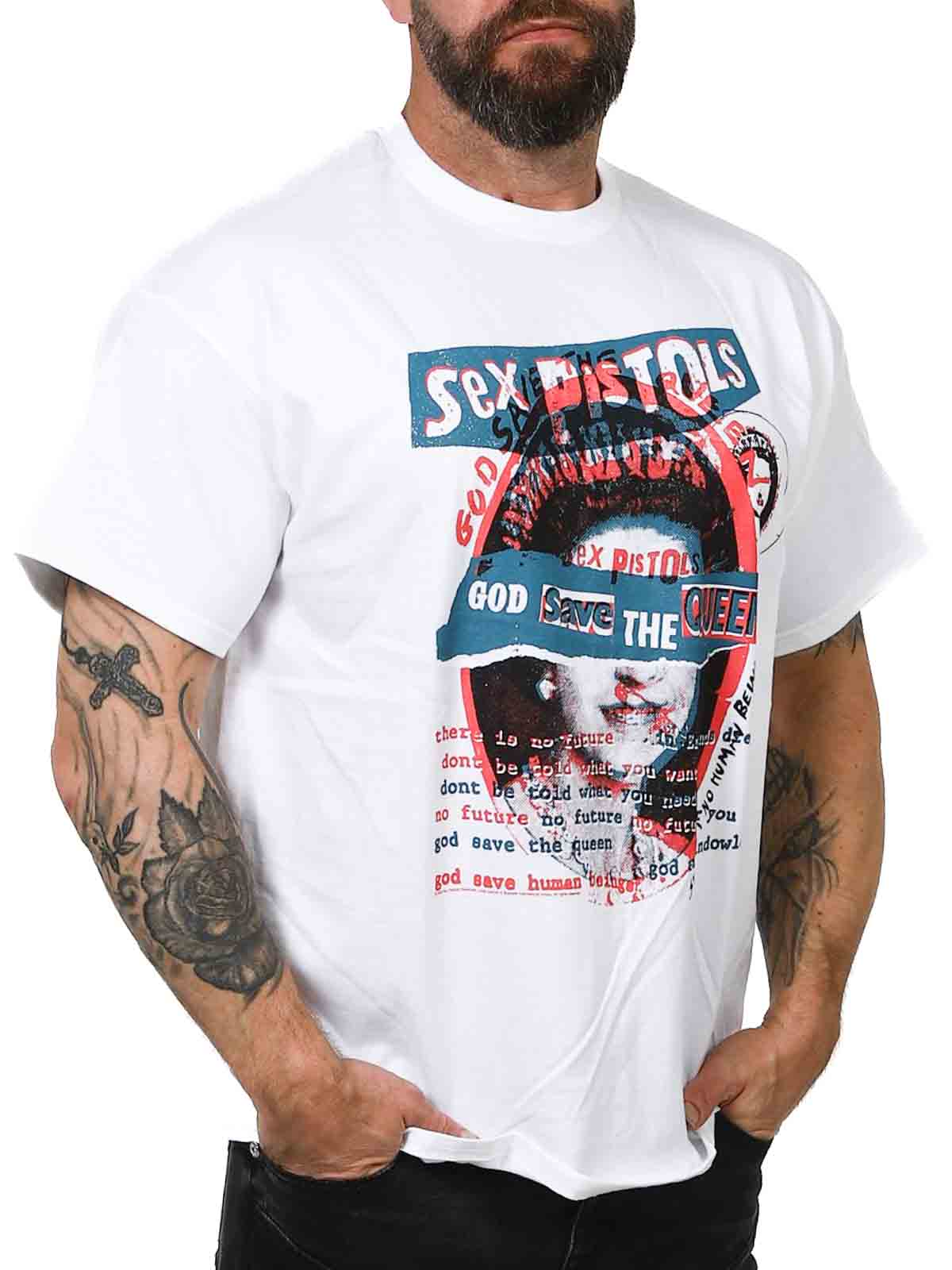 Band Merch Sex Pistols God Save The Queen T-skjorte i hvit er et rebellisk must for enhver musikkelsker.