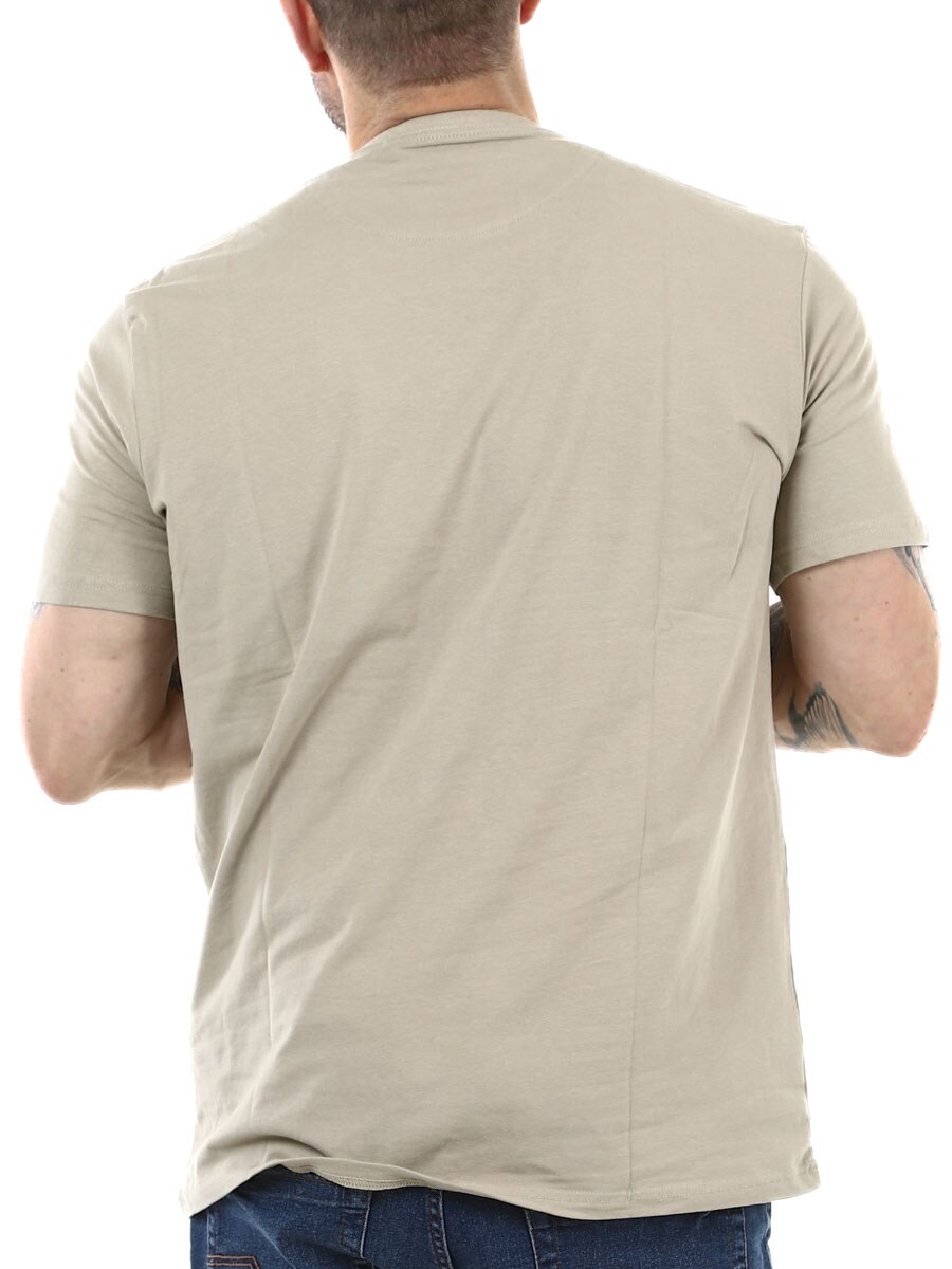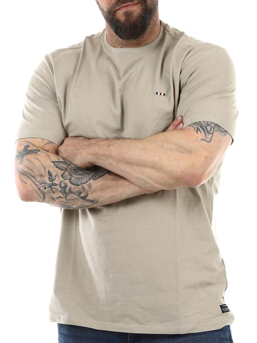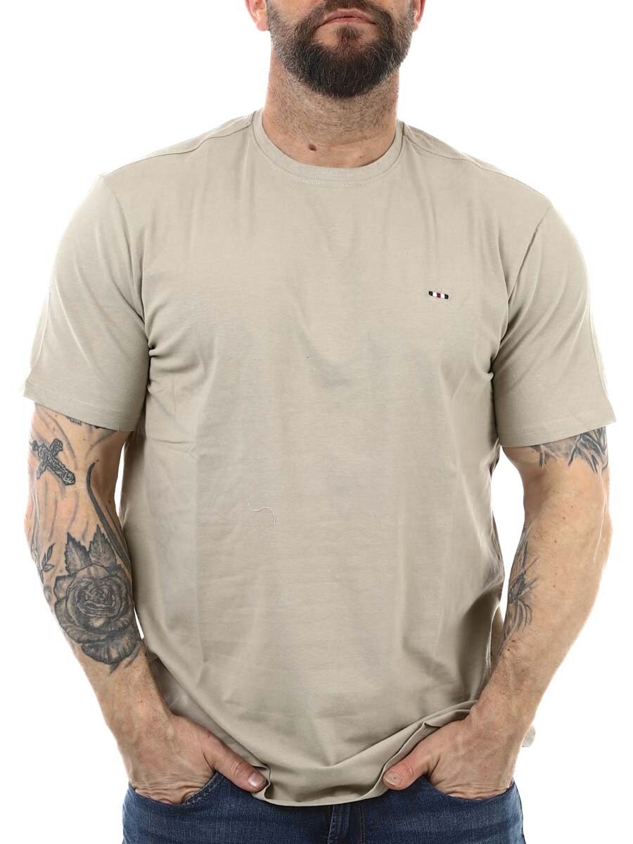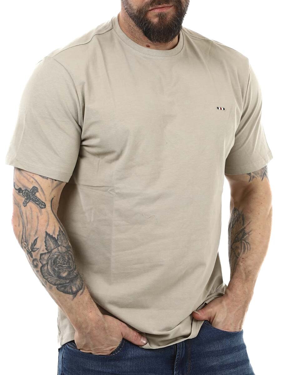 Ensfarget t-skjorte i et mykt og elastisk materiale. Den har en avrundet halsåpning, et trykk på brystet og en stofflapp nederst. Dette er en klassisk modell som passer til alt.
