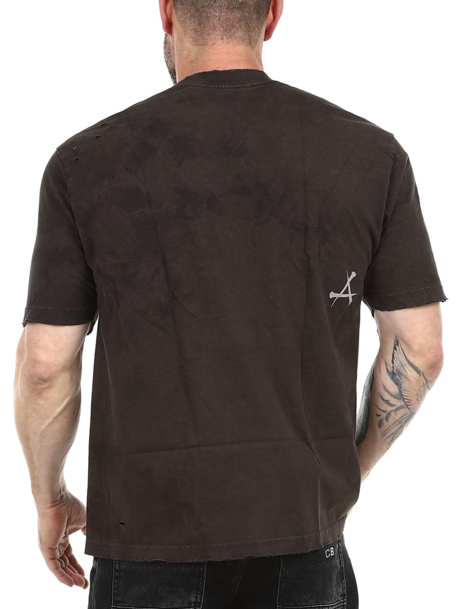 En unik og stilfull t-skjorte med slitasjedetaljer og kraftfulle motiver. Den utvaskede fargen kombinert med vinger, hodeskalle og kors skaper et rocka uttrykk som virkelig skiller seg ut. For deg som vil bære noe som synes!