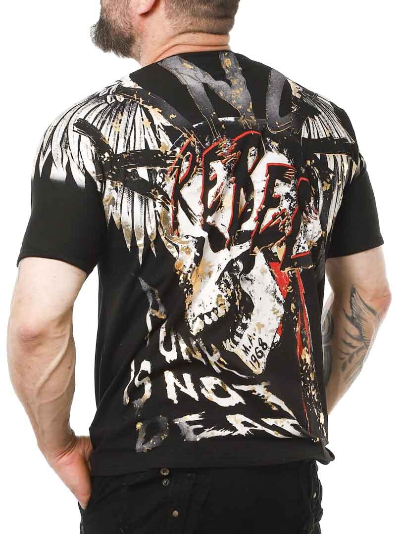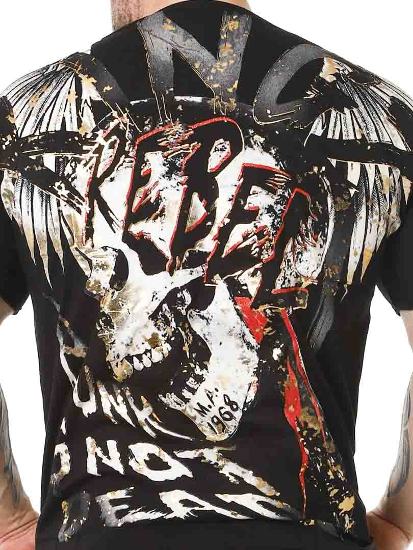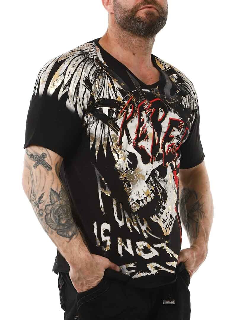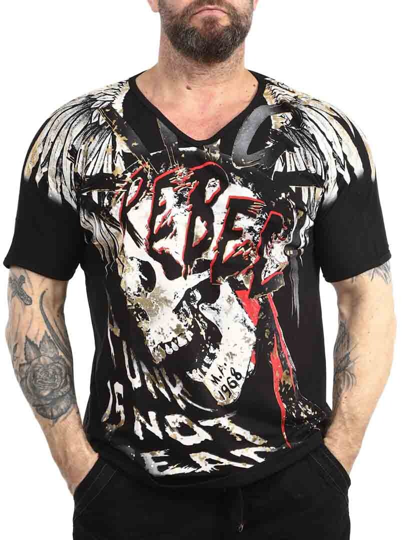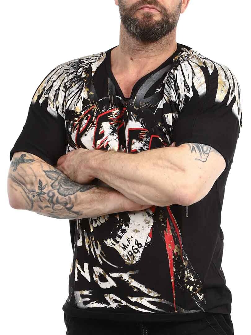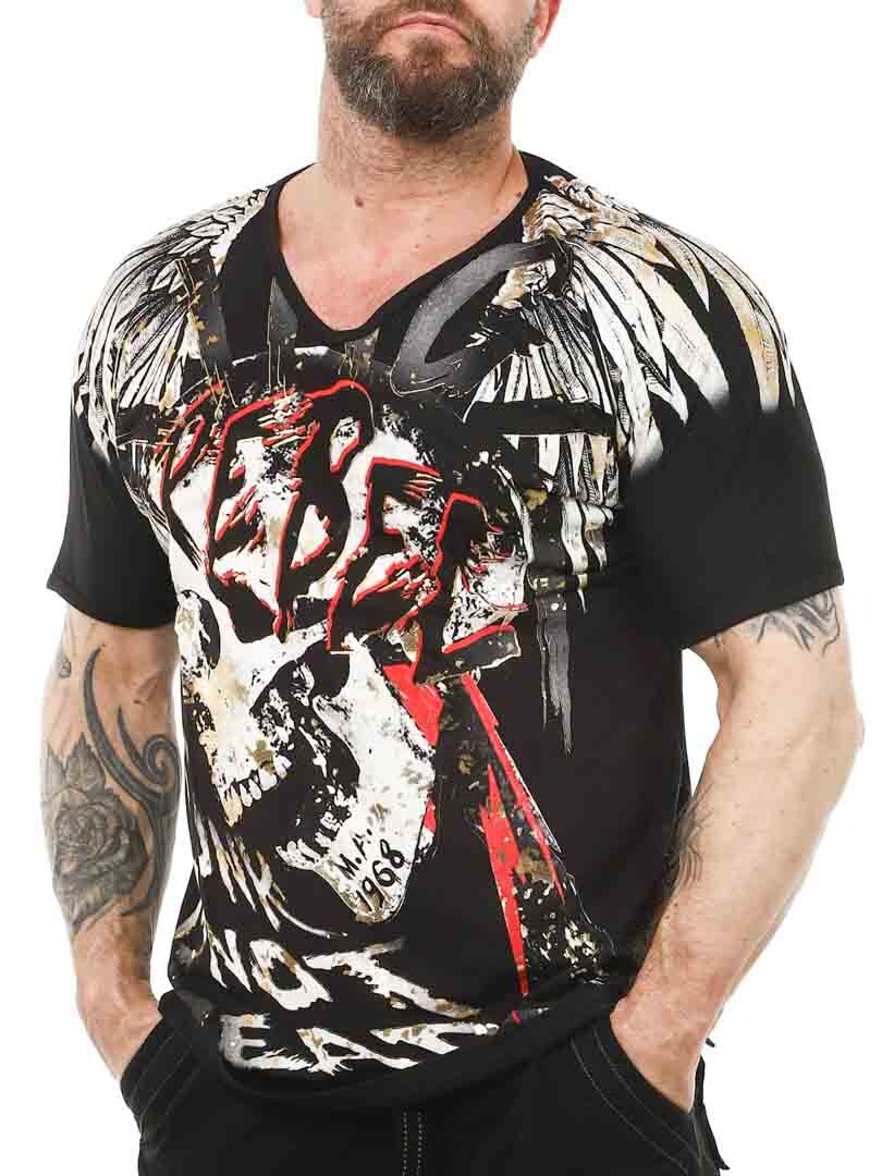 Tøff t-skjorte detaljert med trykk både foran og bak. Den har v-hals og er i et mykt og elastisk materiale. Med denne t-skjorten blir du garantert et blikkfang!
