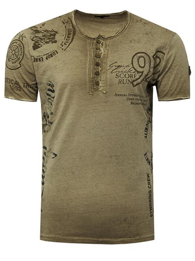 Tøff steinvakset t-skjorte med knapper i halsen fra Rusty Neal