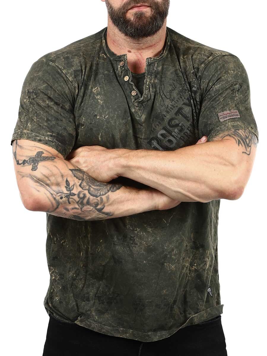 Mønstret t-skjorte detaljert med knapper i halsåpningen, en stofflapp med logo på venstre erme og en nederst i linningen. Laget i myk og elastisk bomull som gjør at den sitter behagelig på kroppen!