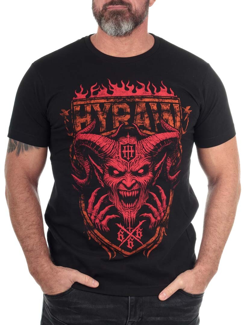 Hyraw Team Satan T-skjorte i svart er en kaxig del av vinterkolleksjonen 2025 med et mørkt, kunstnerisk trykk trykt i Frankrike.