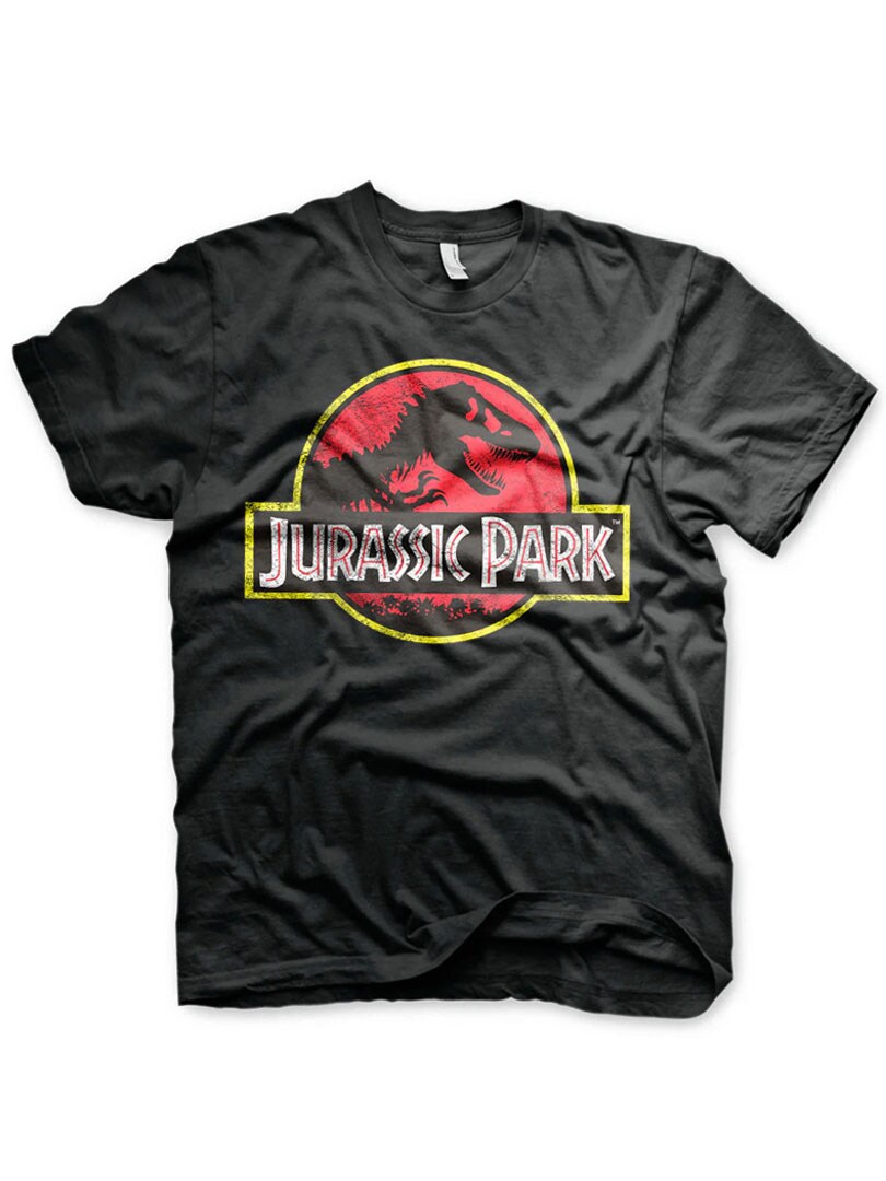 Svart T-skjorte med Jurassic Park-trykk på forsiden. T-skjorten har klassisk passform med rund hals – perfekt for fans av eventyr og filmhistorie.