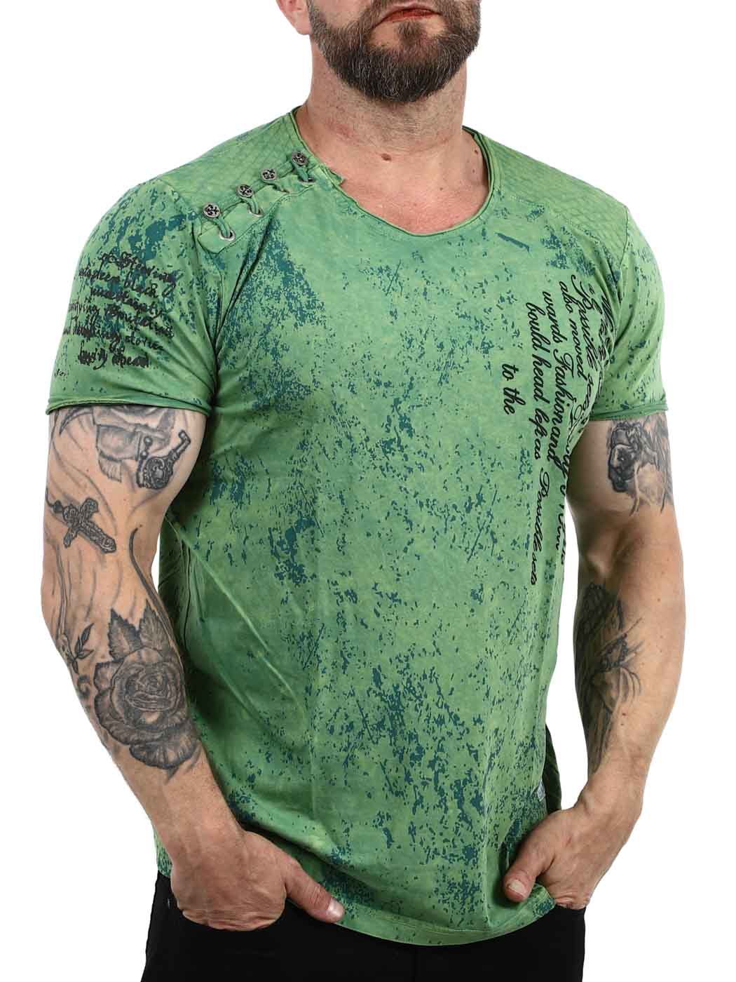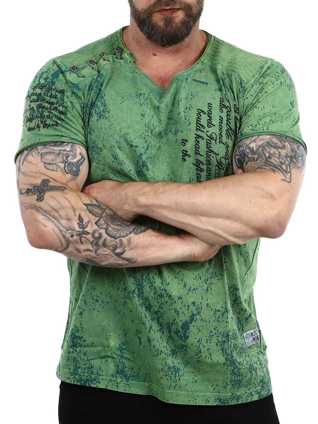 Grønn t-skjorte med knappelukking fra Rusty Neal