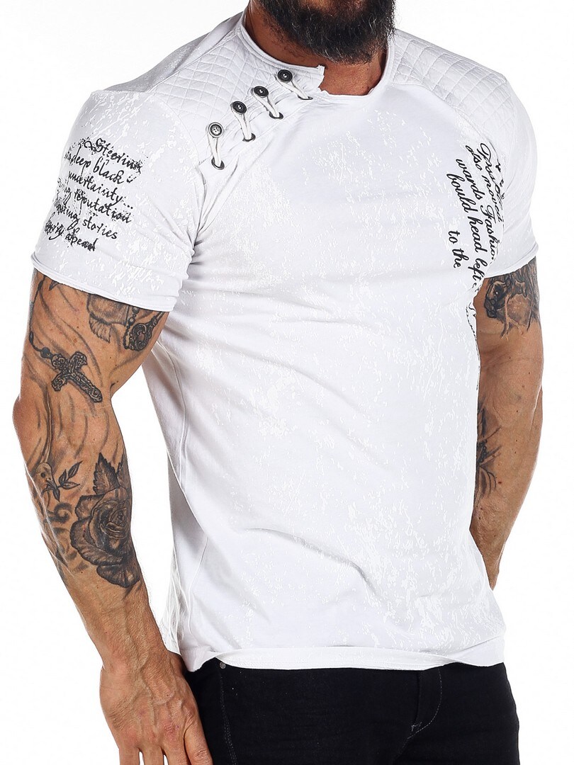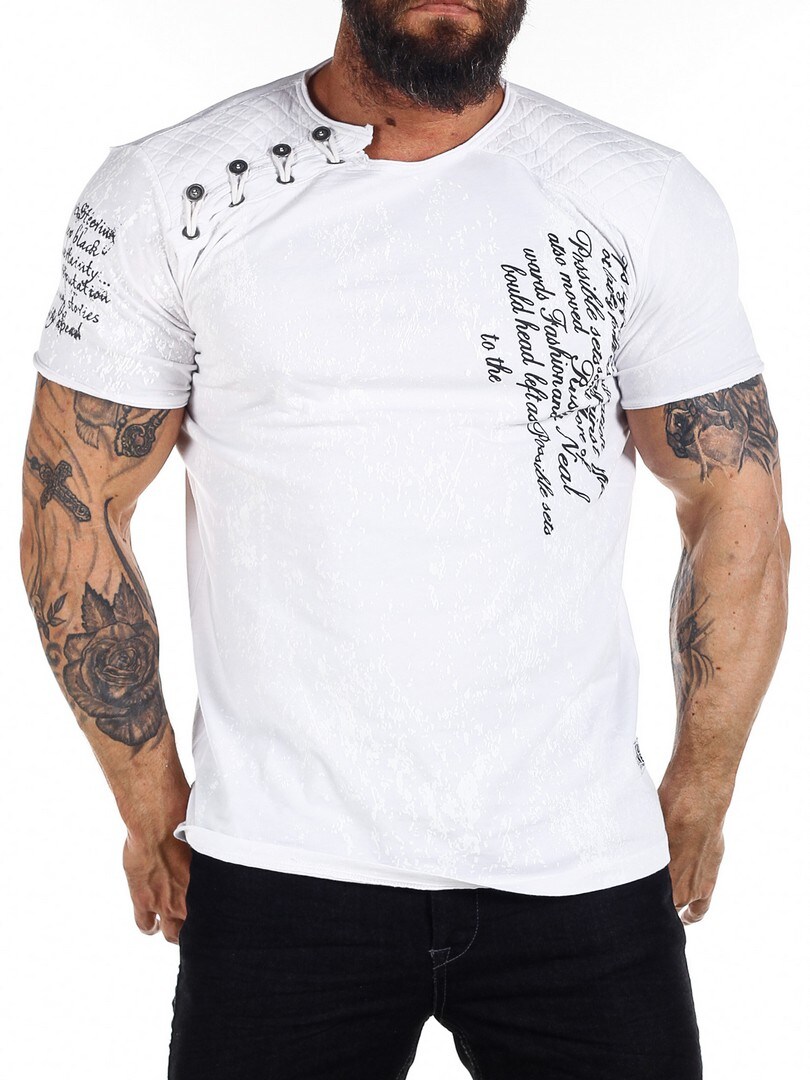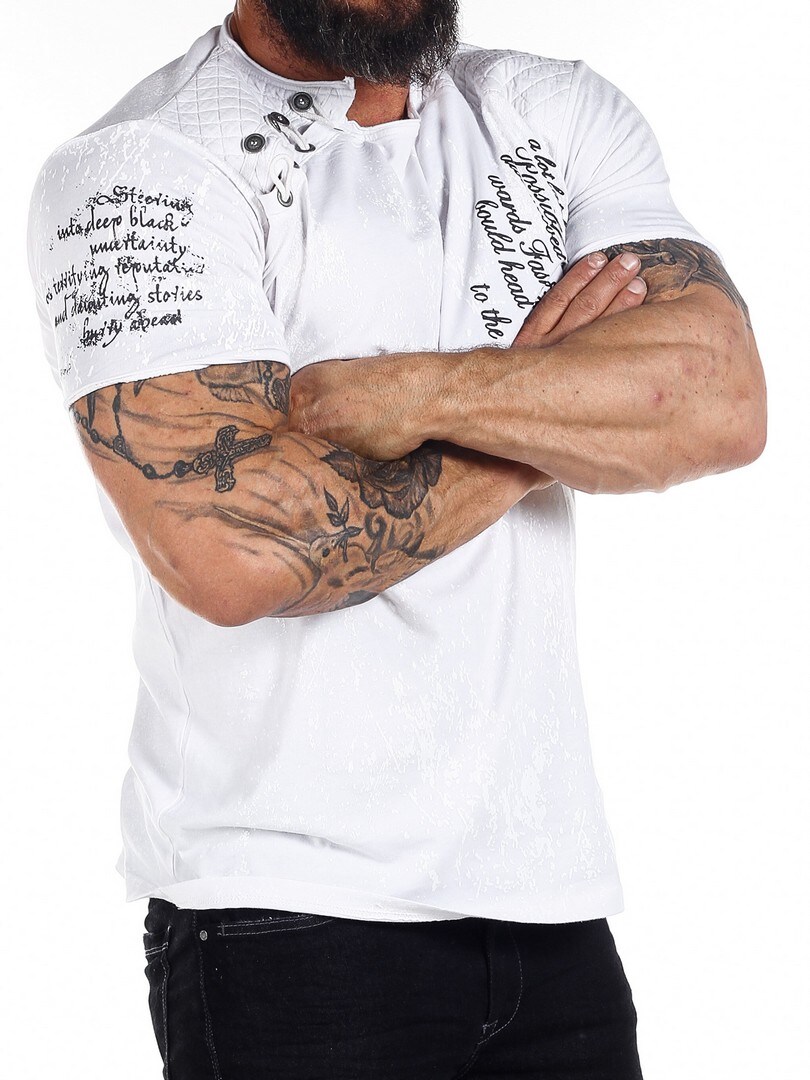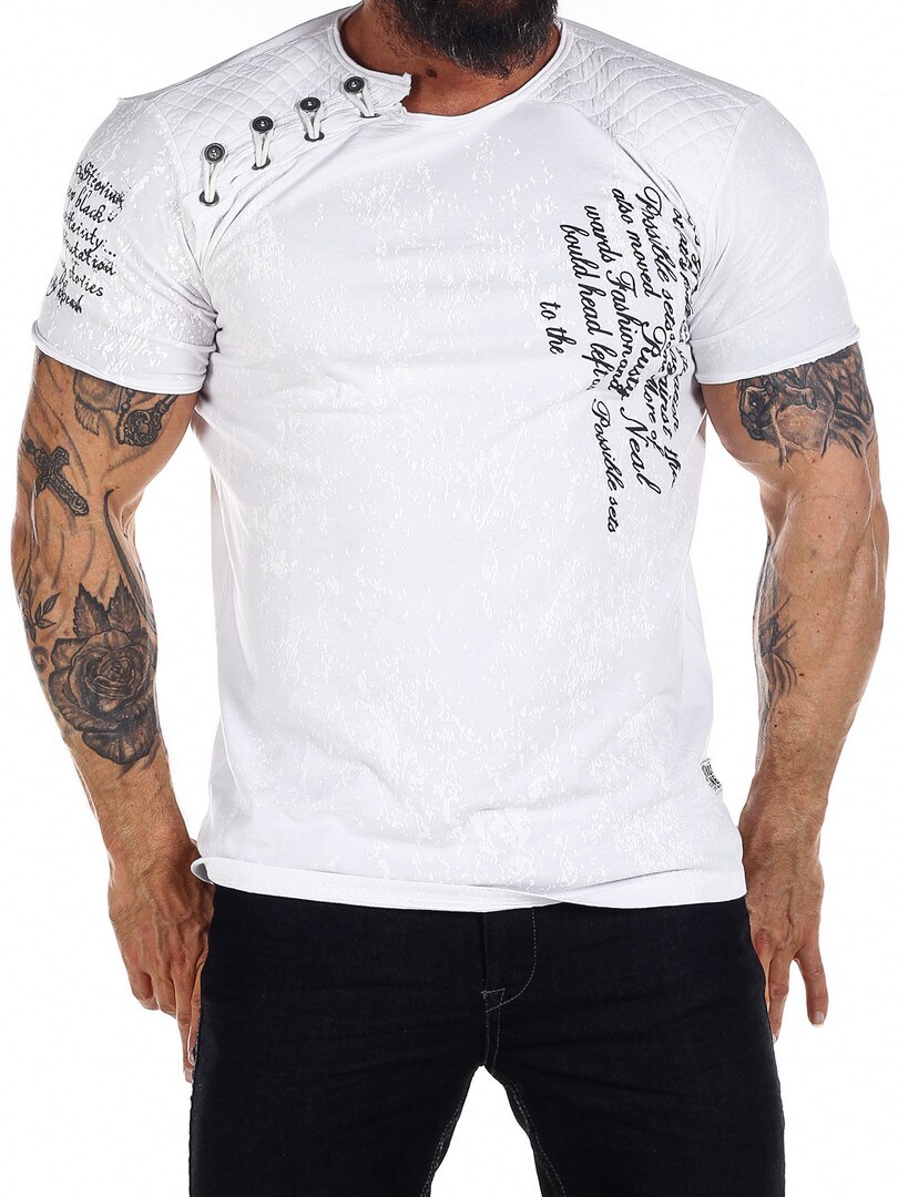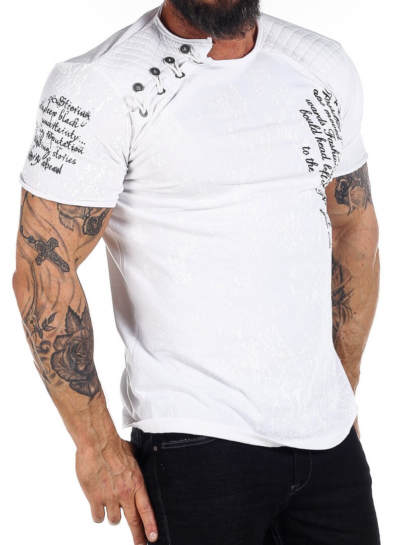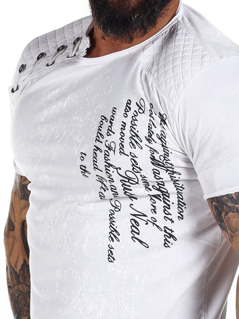 Mønstret T-skjorte i bomullsstretch med teksttrykk på venstre bryst og høyre arm. Markerte skuldre med knapper og rutete mønster, avrundet hals, rå kanter og stofflapp med logo i linningen. Finnes i flere farger!