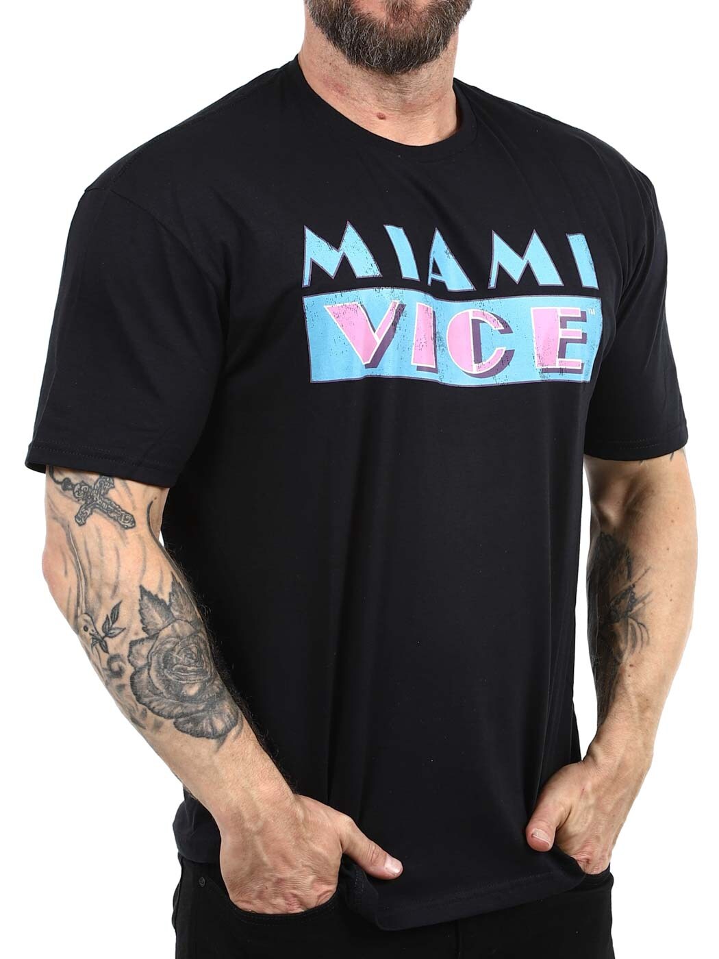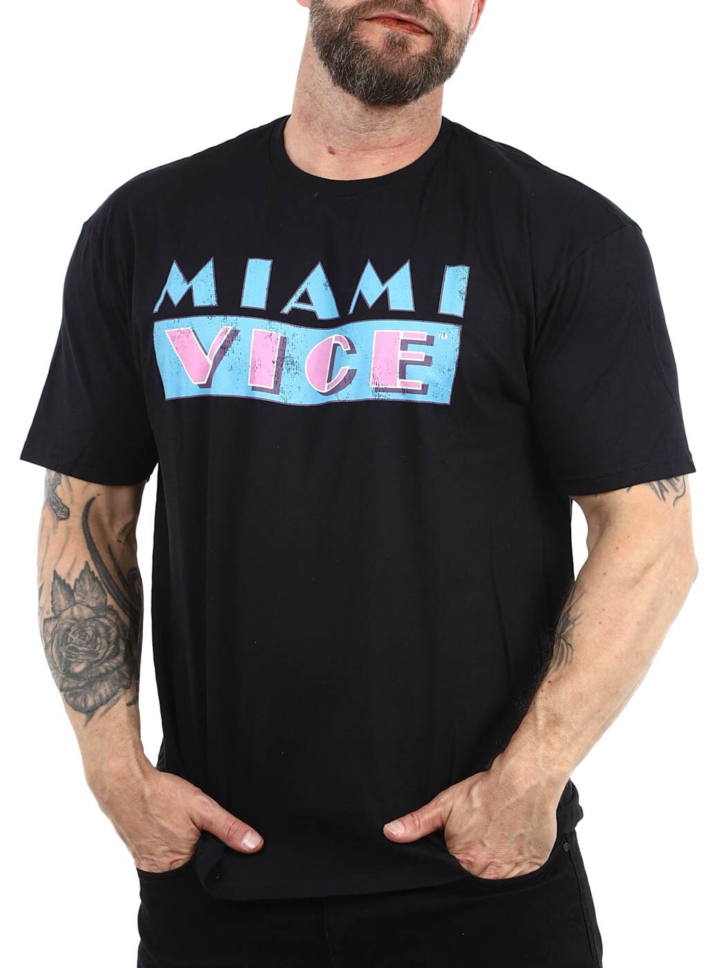 Føl stemningen fra den legendariske TV-serien Miami Vice med denne t-skjorten i retrostil. Den ikoniske Miami Vice-logoen er trykt i et pent slitt utseende som gir en autentisk vintagefølelse.