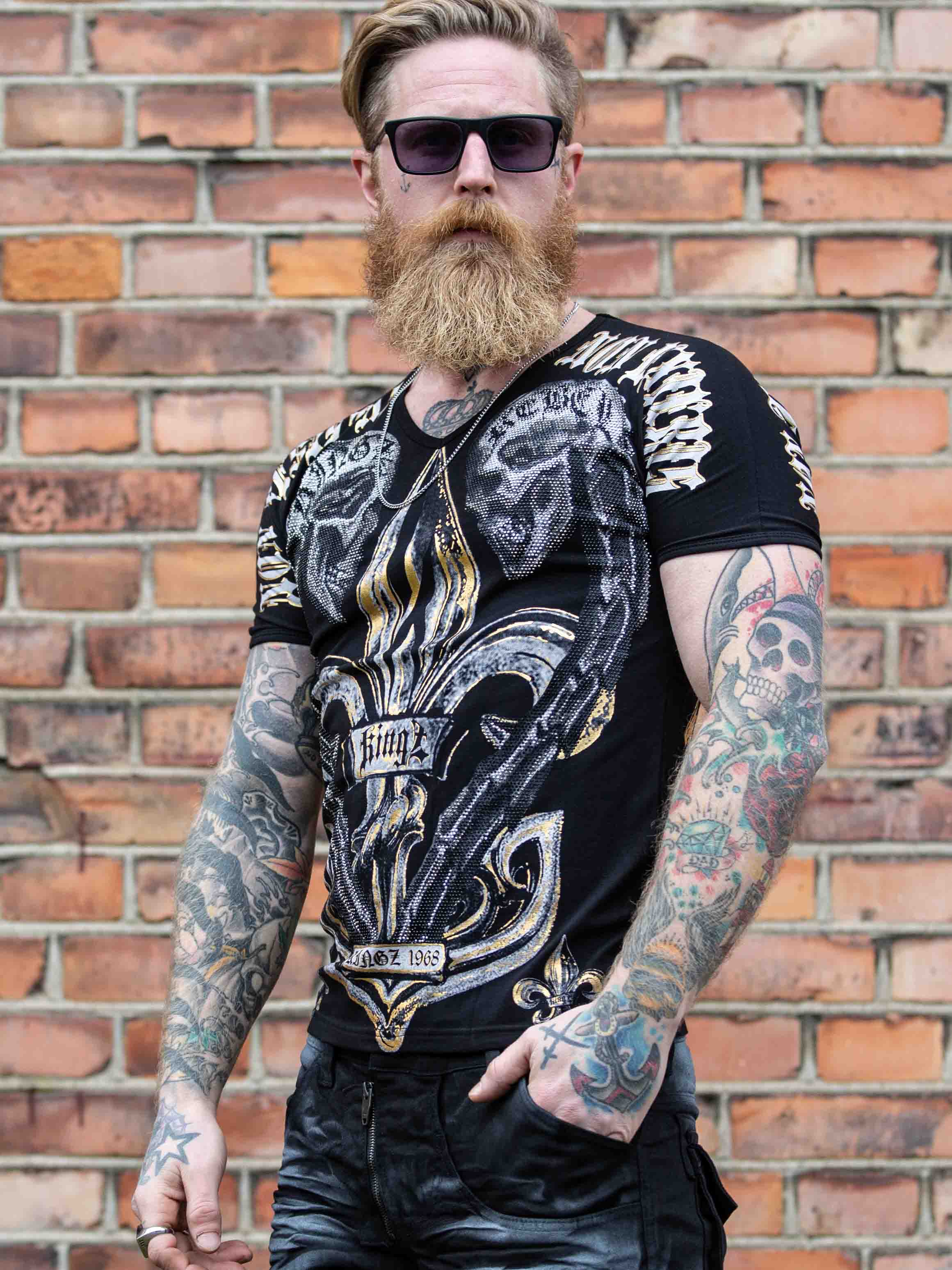 V-hals T-skjorte med trykk og steiner. Laget i komfortabelt bomullsmateriale med smal passform. Denne kule T-skjorten er for deg som vil skille deg ut fra mengden!