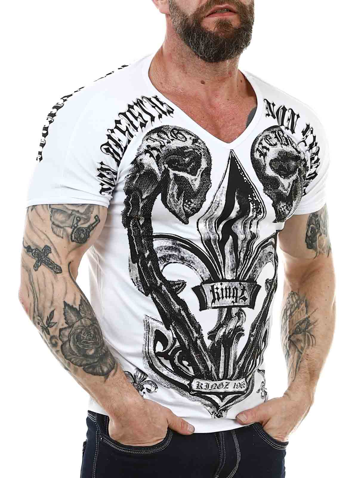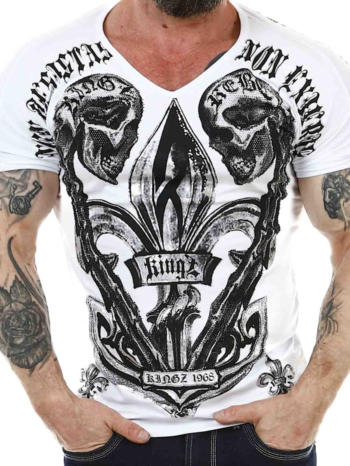V-hals T-skjorte med trykk og steiner. Laget i komfortabelt bomullsmateriale med smal passform. Denne kule T-skjorten er for deg som vil skille deg ut fra mengden!