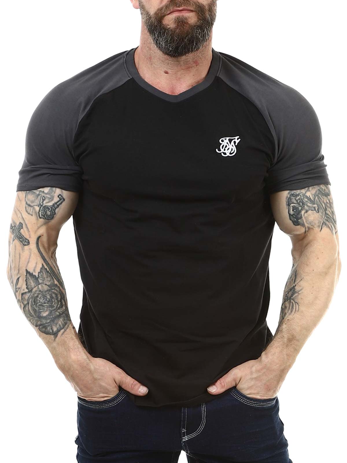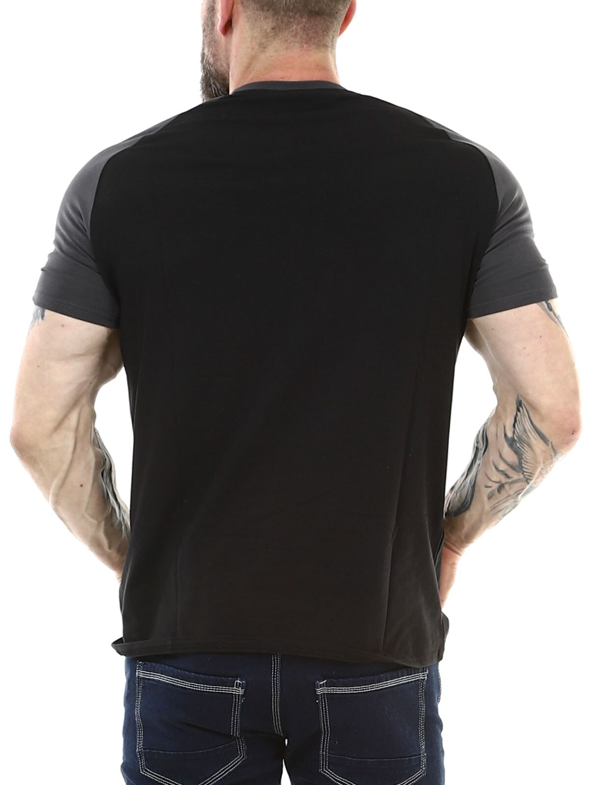 Stilren T-skjorte i svart med mørkegrå ermer og en hvit brodert logo på brystet. Et perfekt plagg for deg som vil kombinere komfort, en sporty følelse og moderne design. T-skjorten er laget i et mykt og elastisk materiale som følger bevegelsene dine uten å miste formen.