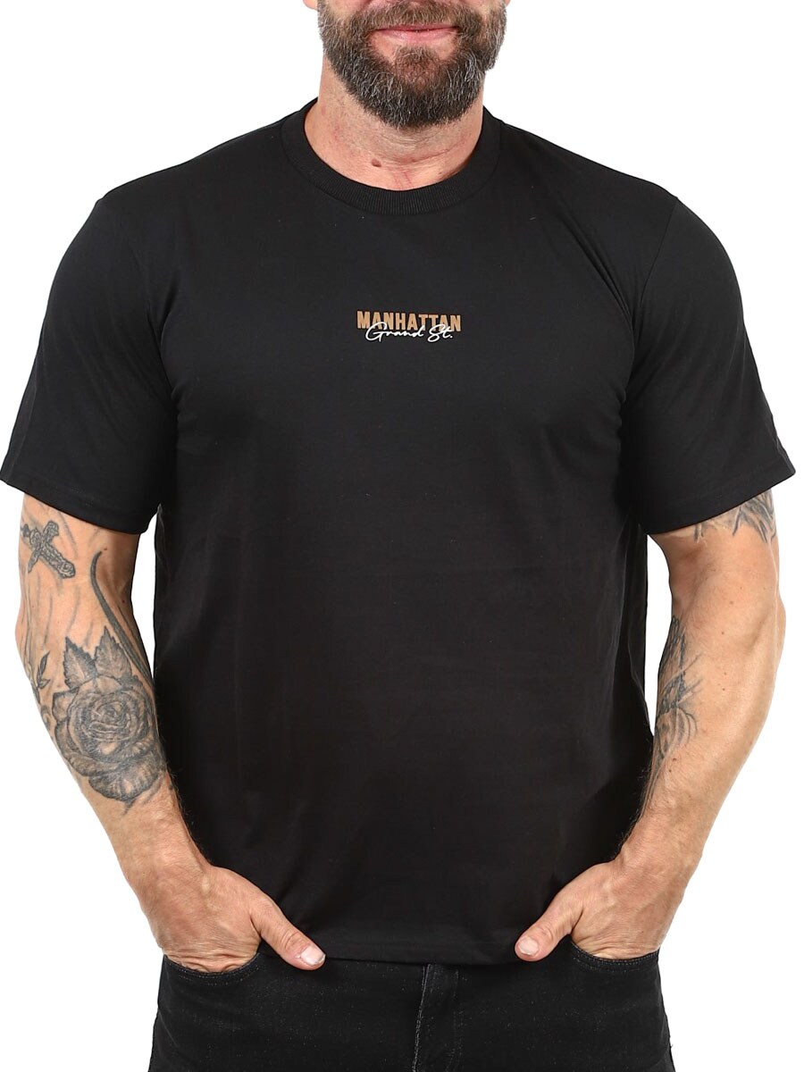 Denne t-skjorten er designet med et lite, diskret trykk på brystet og et større motiv på ryggen, en kombinasjon som gir et stilrent inntrykk forfra og et sterkt uttrykk bakfra. Den har en klassisk passform og en avrundet halsåpning.