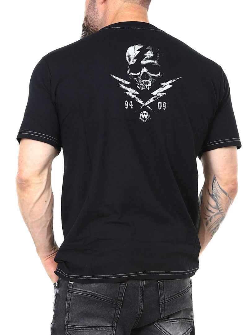 Wornstar Thunderstruck T-skjorte i svart er en håndlaget bomullstrøye med unike kontrastsømmer og et rocka hodeskallemotiv.