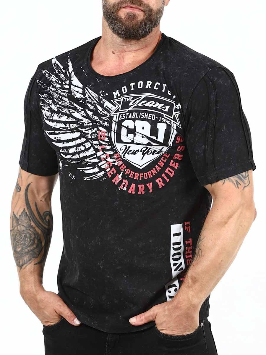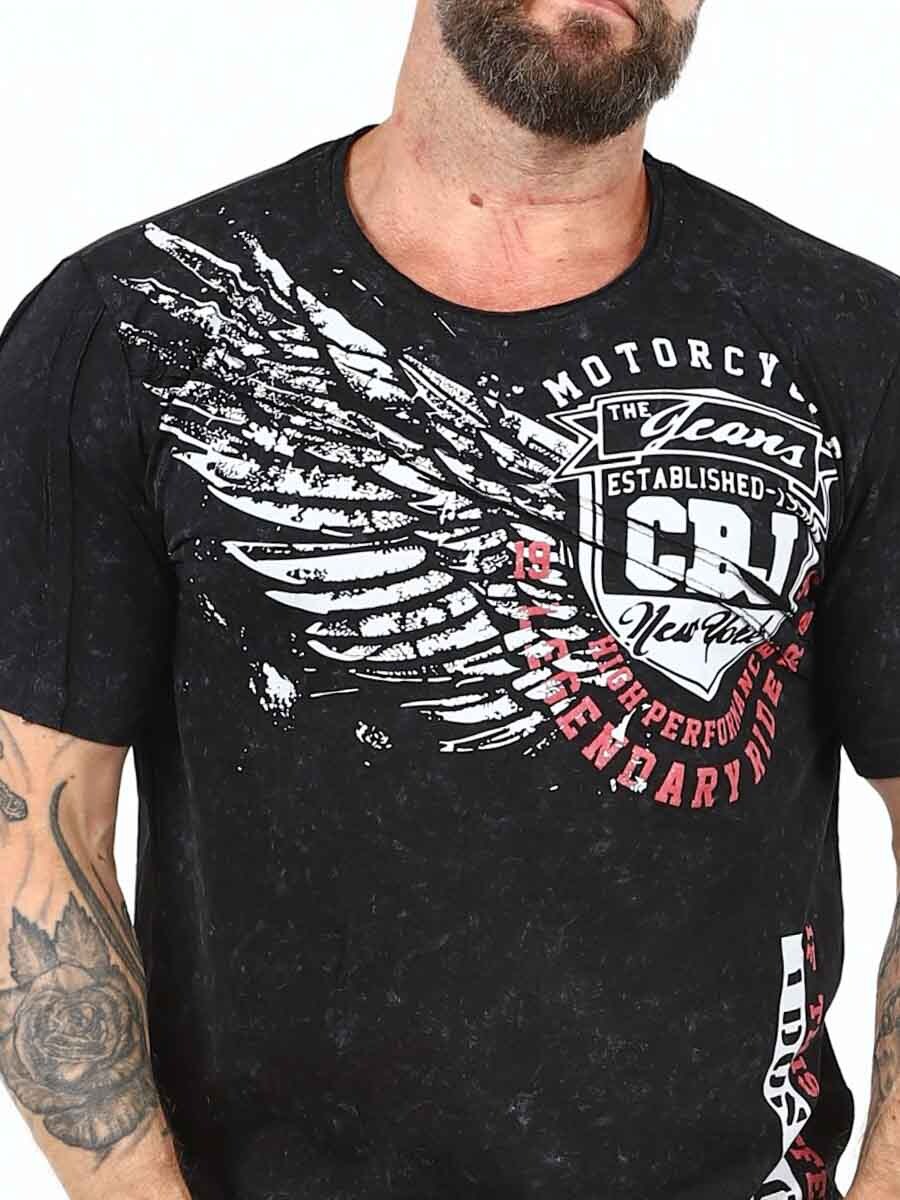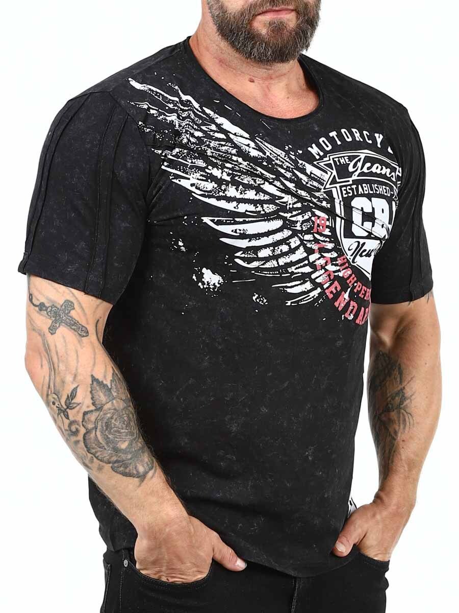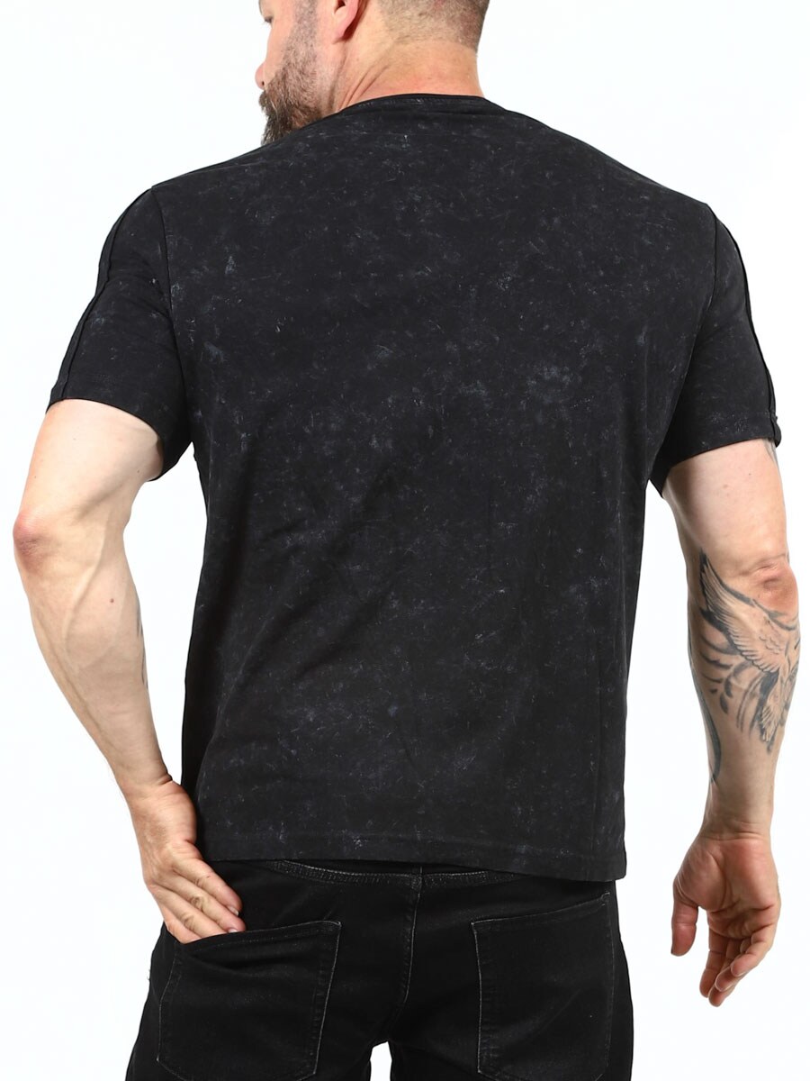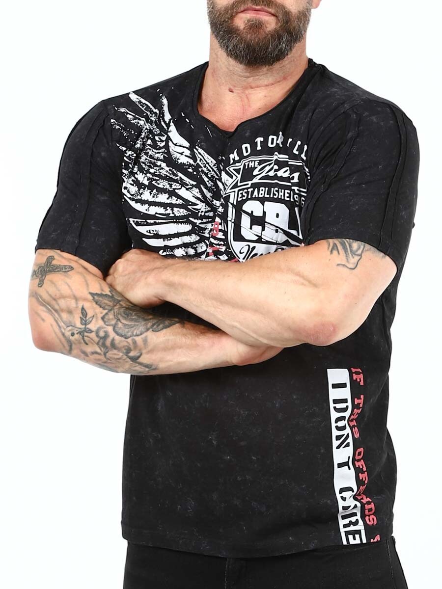 Stilig t-skjorte med avrundet halsåpning som har rå kanter. Designet med et dristig trykk som utstråler en selvsikker stil og rebelsk holdning. Laget av et mykt og elastisk materiale.