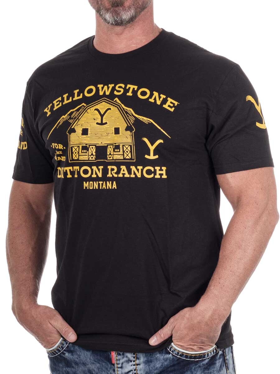 T-skjorte med det klassiske Dutton Ranch-trykket fra den populære TV-serien Yellowstone. Laget av mykt bomullsmateriale for høy komfort og holdbarhet. Den har en rett passform og en rund hals.