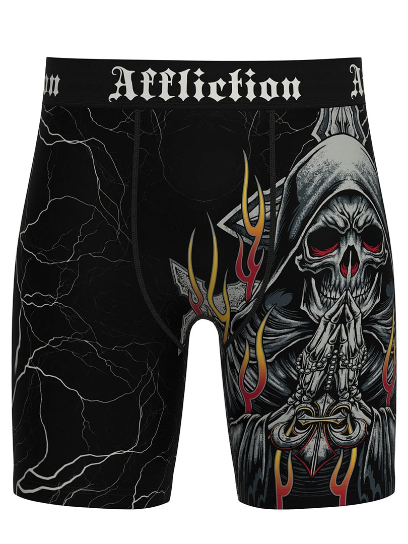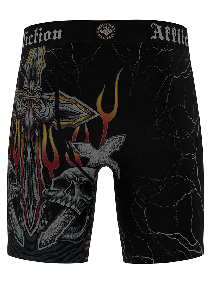 Boxershorts med hodeskallemotiv i klassisk Affliction-stil. Laget i et mykt og stretchy materiale som gir super komfort hele dagen. Den brede linningen med Affliction-logo holder dem pÄ plass og fullfÞrer uttrykket. Perfekt for deg som vil ha undertÞy som skiller seg ut like mye som resten av antrekket.