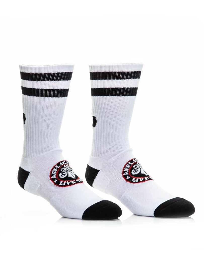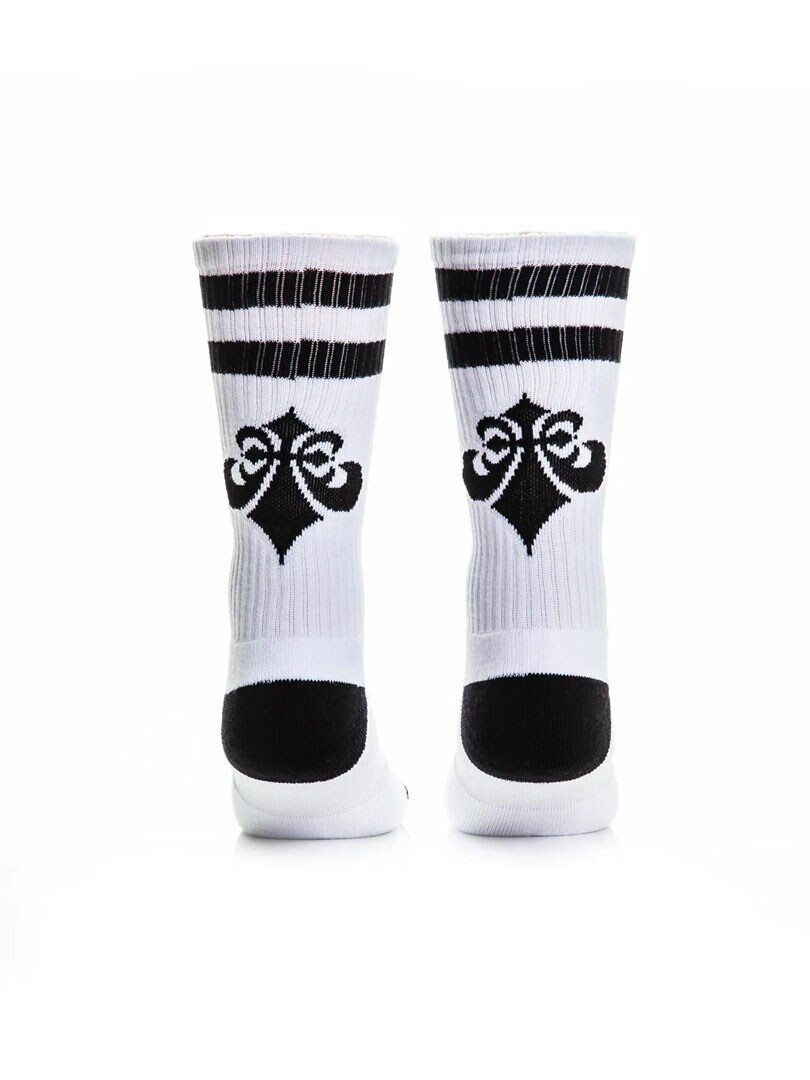Gi antrekket ditt et selvsikkert preg med disse mellomhøye sokkene i hvit ribbestrikket design. De ribbestrikkede skaftene gir en behagelig og stabil passform som sitter på plass hele dagen. Sokkene har logotyp både foran og bak. Perfekte for både hverdag, trening og streetwear.