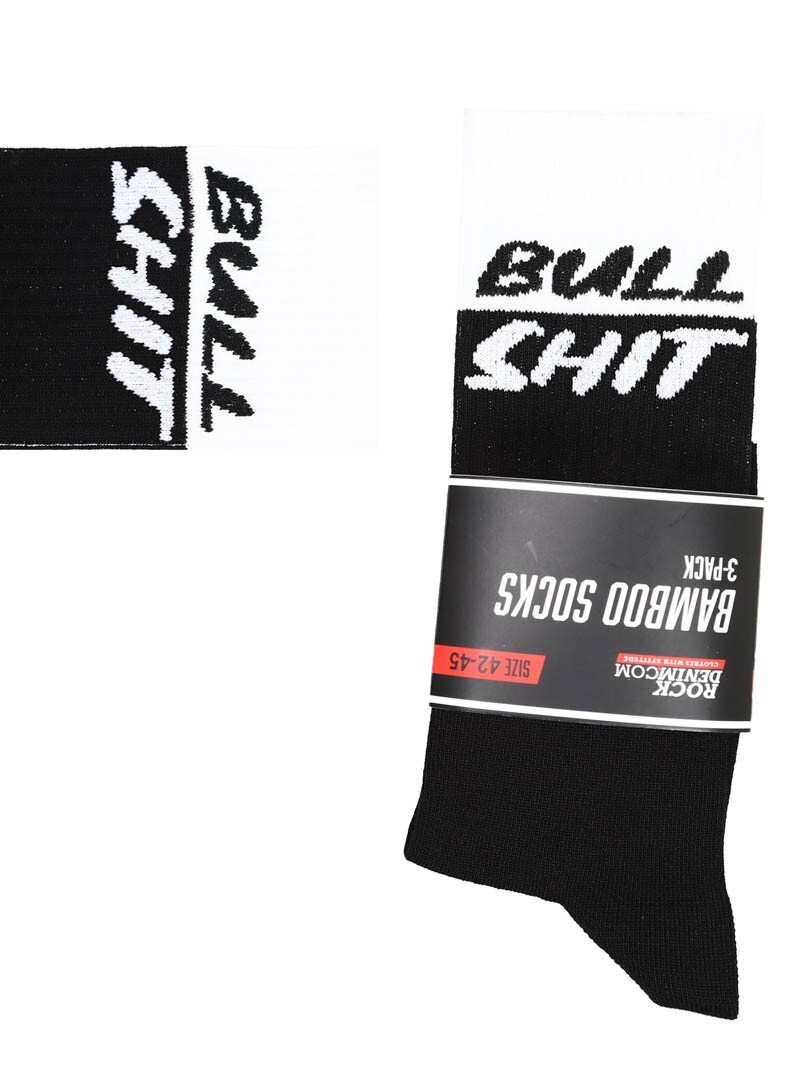 3-pakning med superkvalitets bambussokker med teksten "Bullshit"