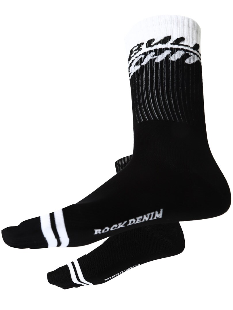 Sokkene er laget i en deilig bambuskvalitet, som har gode egenskaper som temperaturregulering, ekstra pusteevne og svettetransport. Bambus føles mykere enn f.eks. bomull."Rockdenim" med små hvite bokstaver under foten Bambusplanten har et naturlig forsvar mot bakterier, noe som betyr at den vokser uten giftige sprøytemidler.