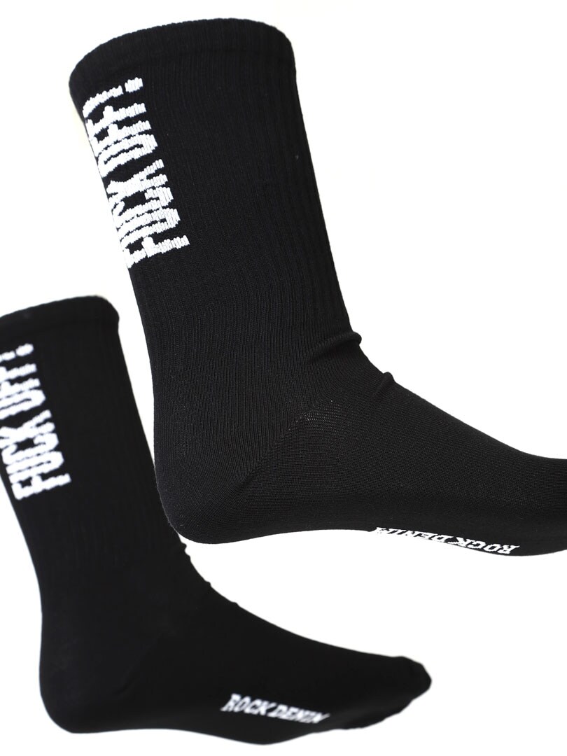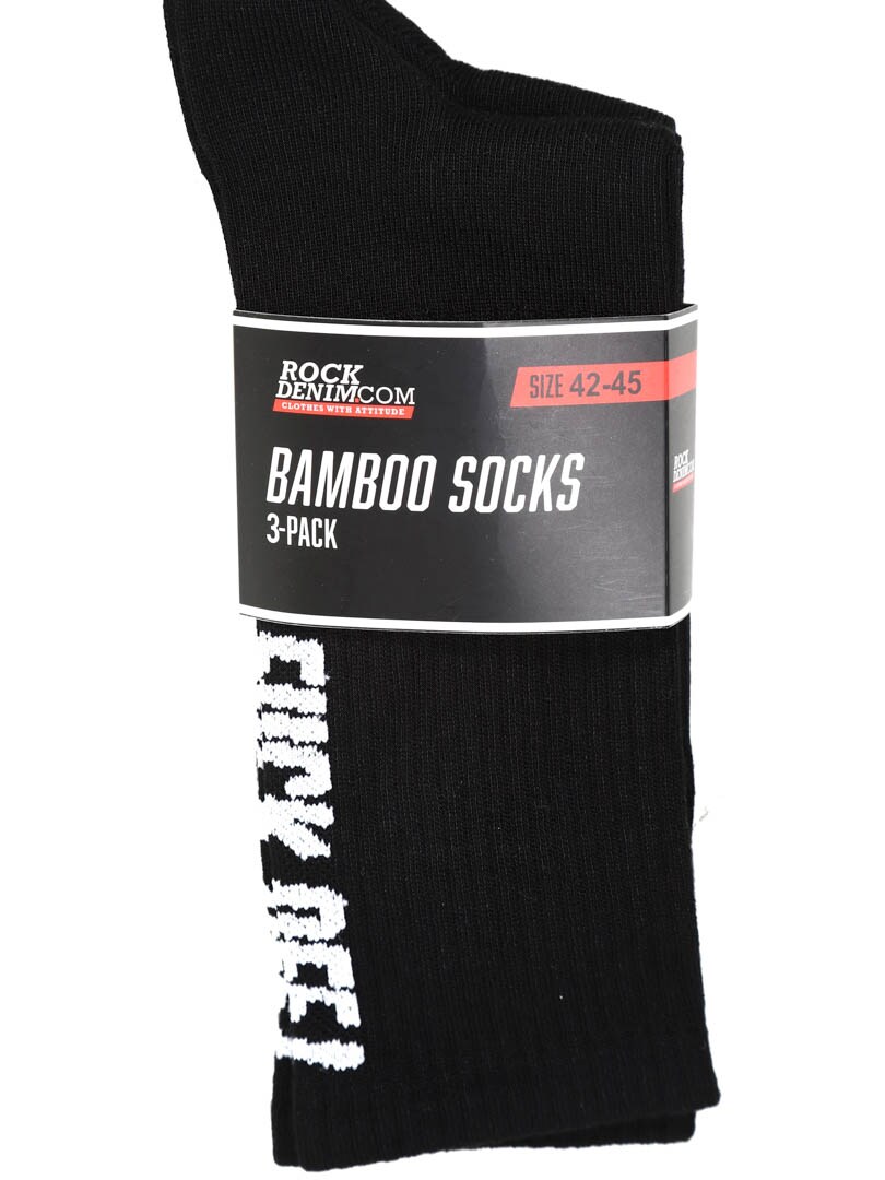 3-pakning med superkvalitets bambussokker med teksten "Fuck off"