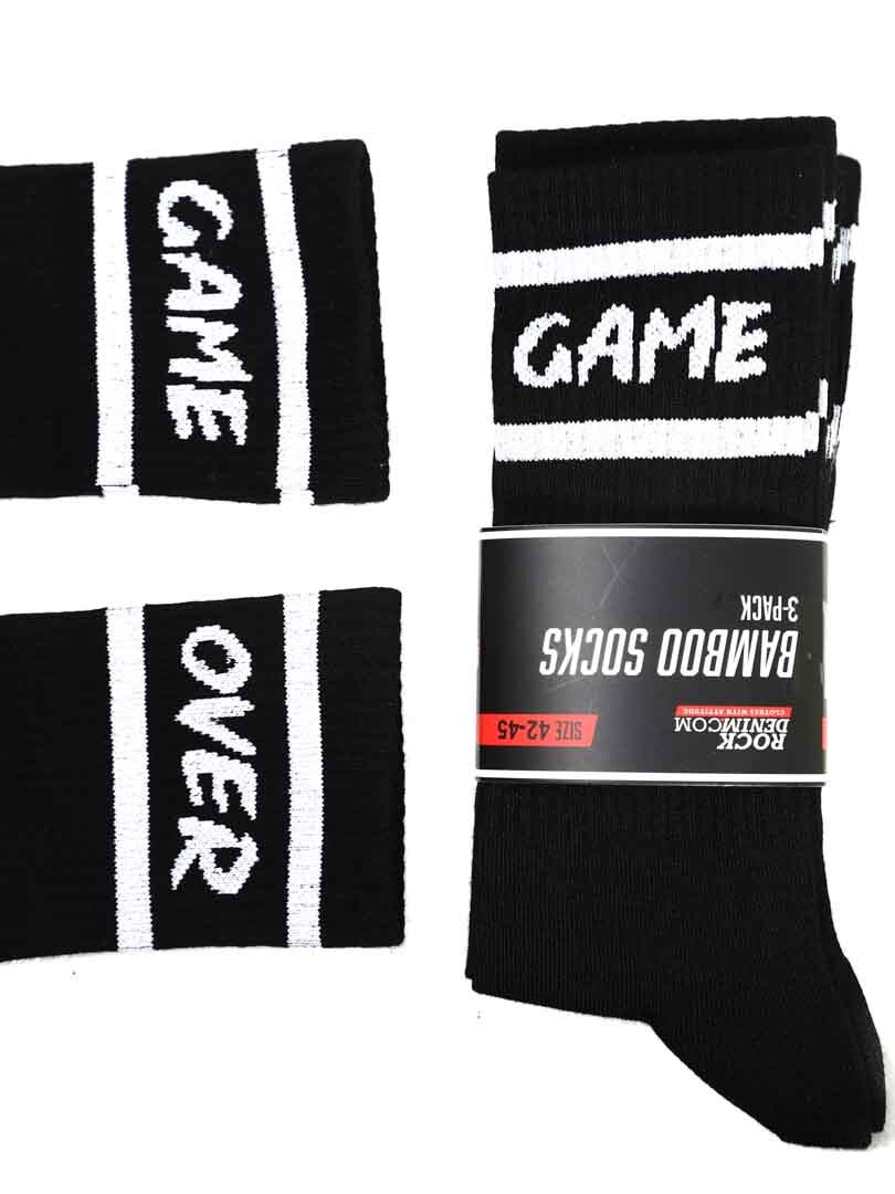 3-pakning med superkvalitets bambussokker med teksten "Game over"