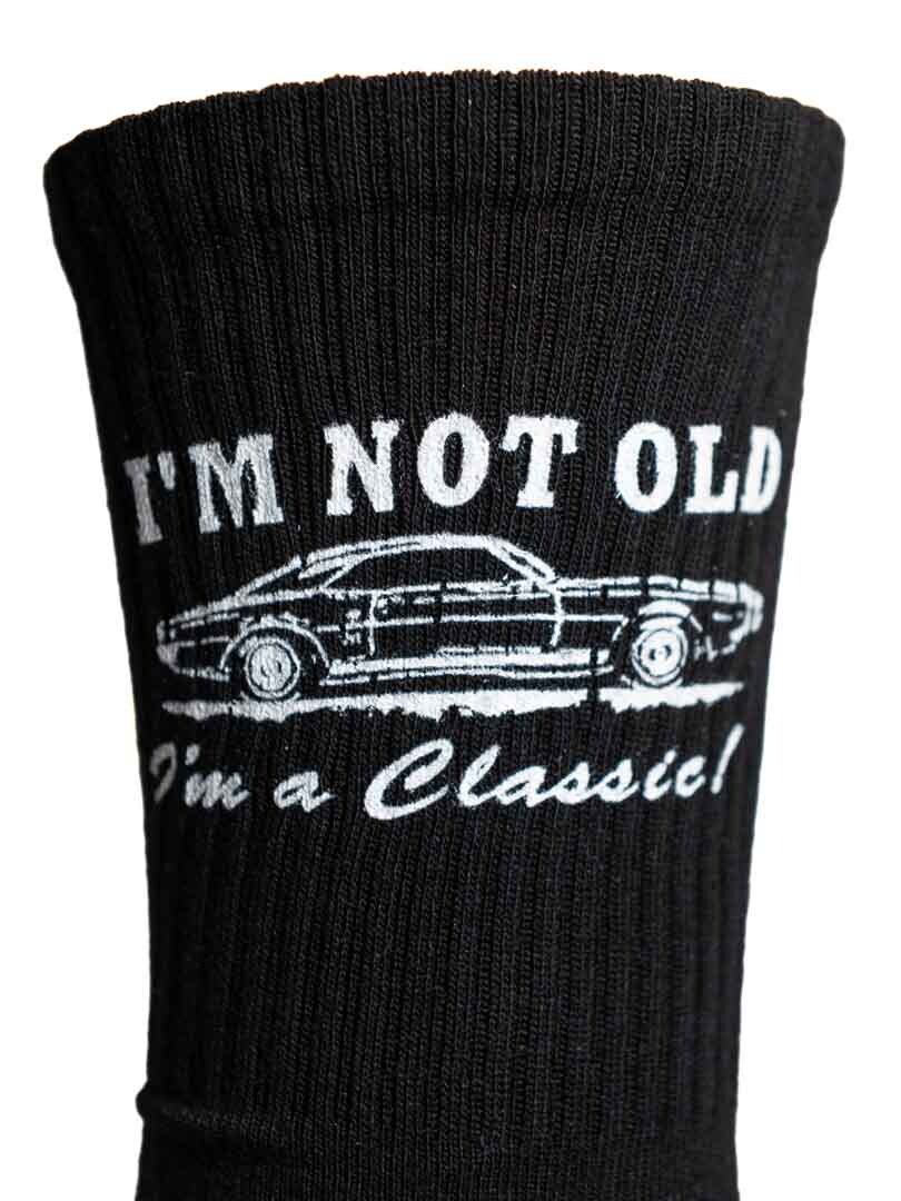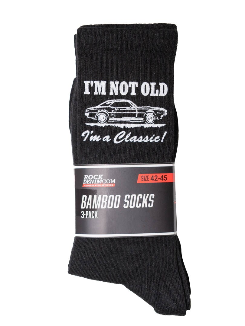 3-pakning superkvalitets bambussokker med teksten "Jeg er ikke gammel! Jeg er en klassiker!"