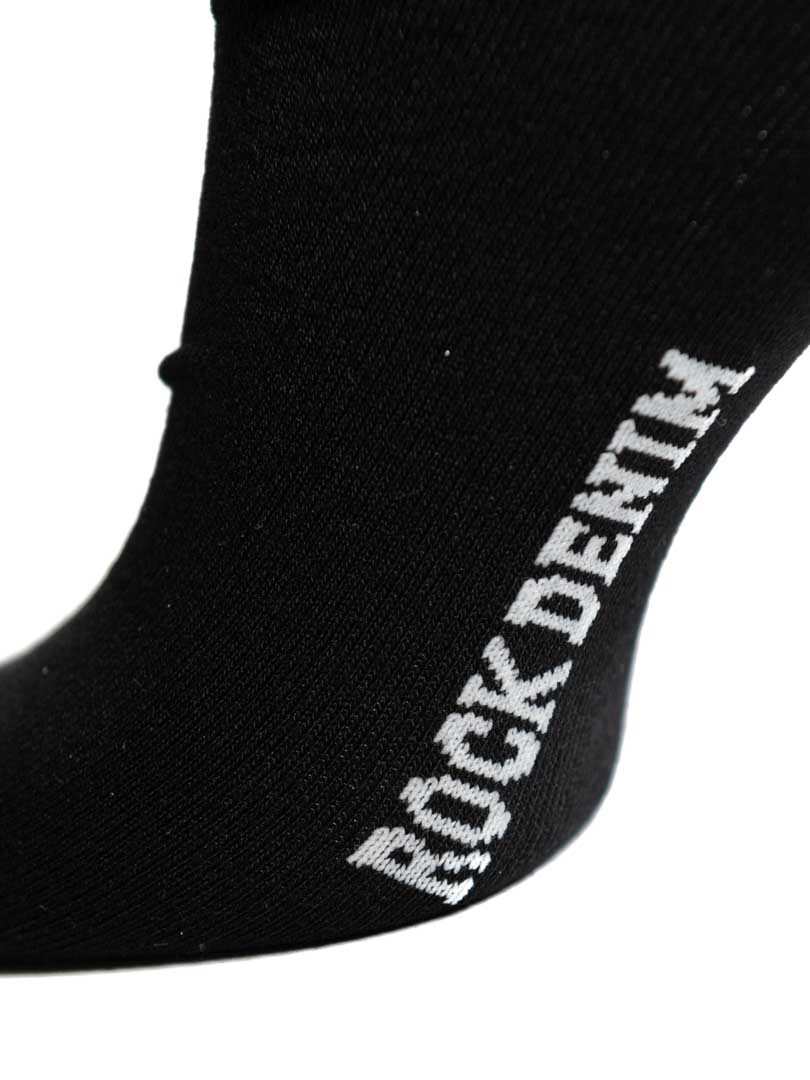 Sokkene er laget i en deilig bambuskvalitet, som har gode egenskaper som temperaturregulering, ekstra pusteevne og svettetransport. Bambus føles mykere enn f.eks. bomull."Rockdenim" med små hvite bokstaver under foten Bambusplanten har et naturlig forsvar mot bakterier, noe som betyr at den vokser uten giftige sprøytemidler.