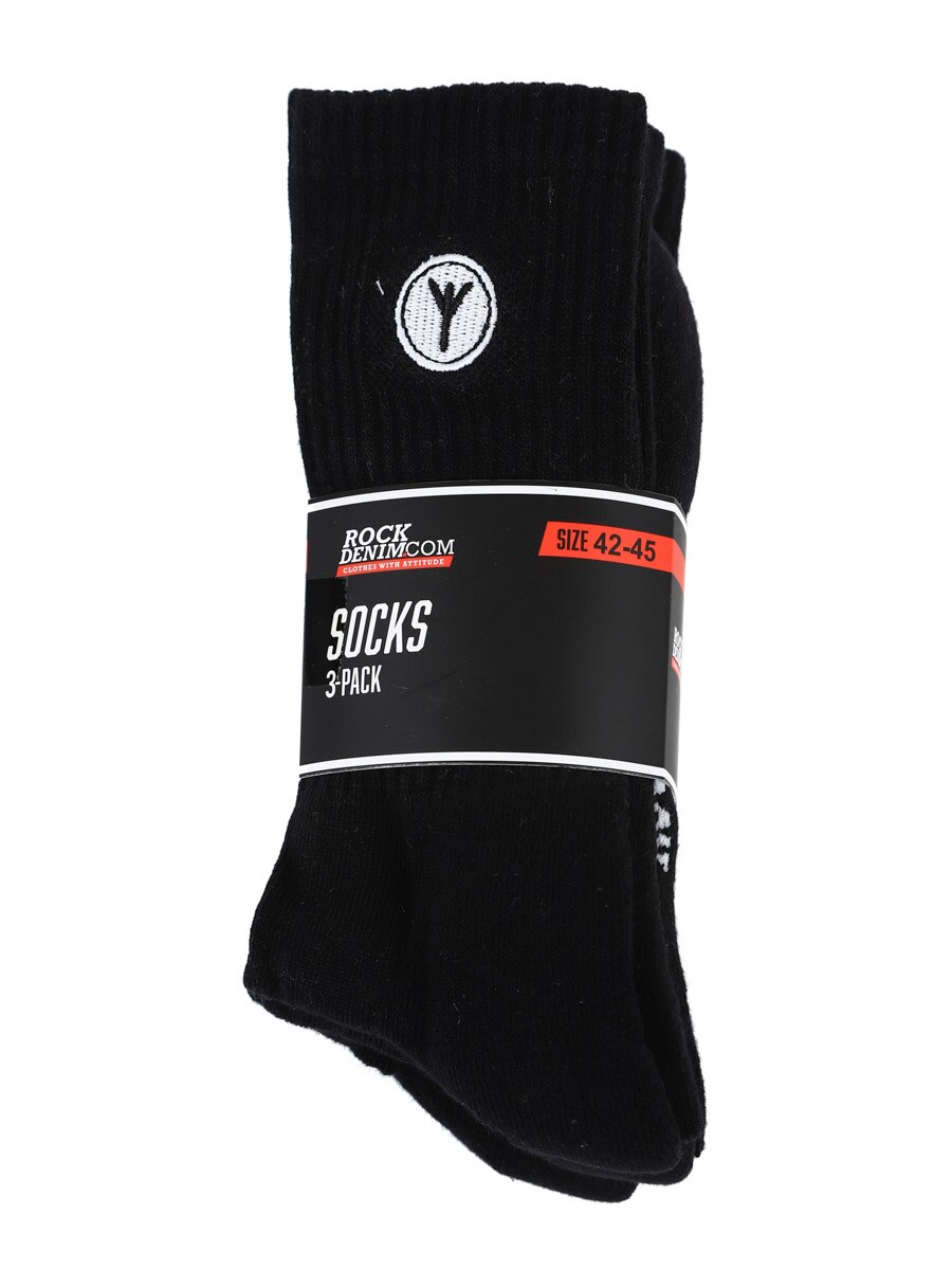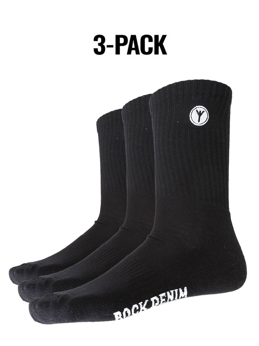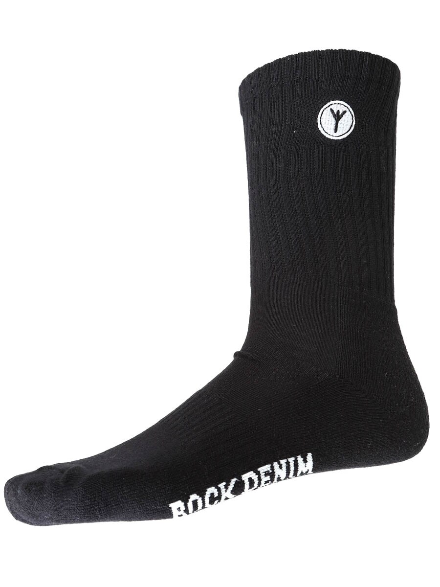 Sorte sokker med trykk i hvitt. Perfekt til hverdagsbruk eller til trening. Ribbestrikket skaft som gir god passform og et sporty utseende. "Rockdenim" i små hvite bokstaver under foten.