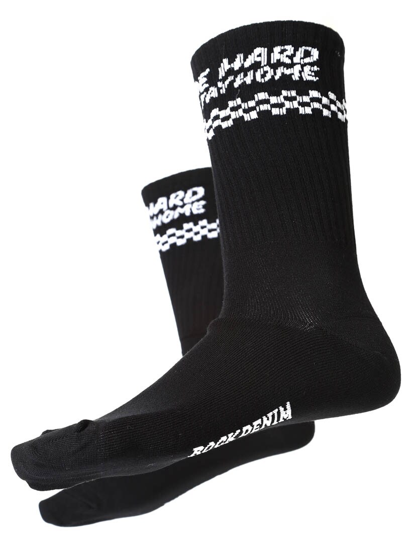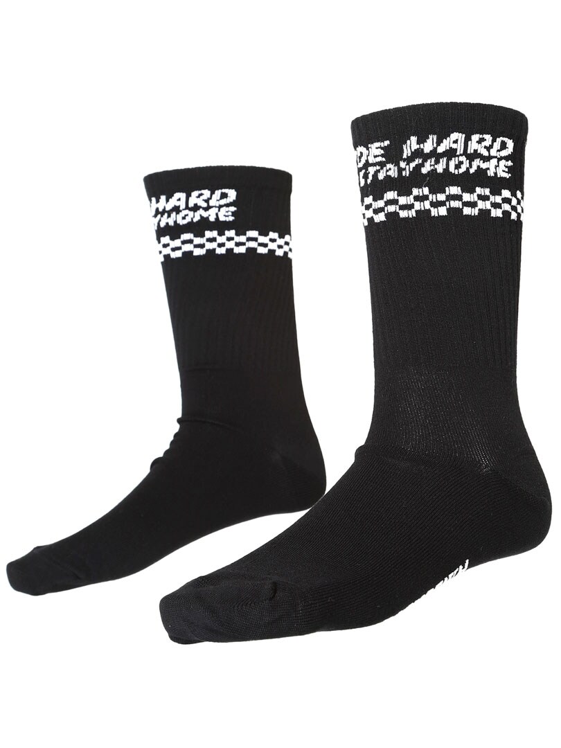 3-pakning med superkvalitets bambussokker med teksten "Ride hard or stay home"