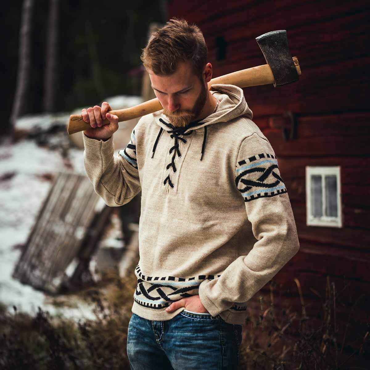 Vi har jobbet med plagg til vår vikingkolleksjon i flere år, med inspirasjon fra fortiden, nordisk mytologi og skandinaviske mønstertradisjoner. Vår visjon har alltid vært å skape vikinginspirerte klær for menn som ønsker en maskulin, tidløs og unik stil.
