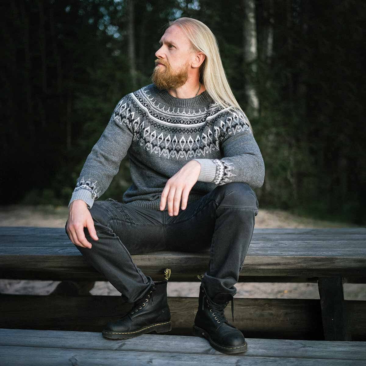 Vi skaper stadig nye, maskuline vikingplagg som kombinerer moderne former med nordisk mytologi og våre nordiske tradisjoner. Hvert plagg er laget i høykvalitetsmaterialer som lammull, kasjmir, bomull eller skinn, med våre egne trykk og design som du ikke finner andre steder.