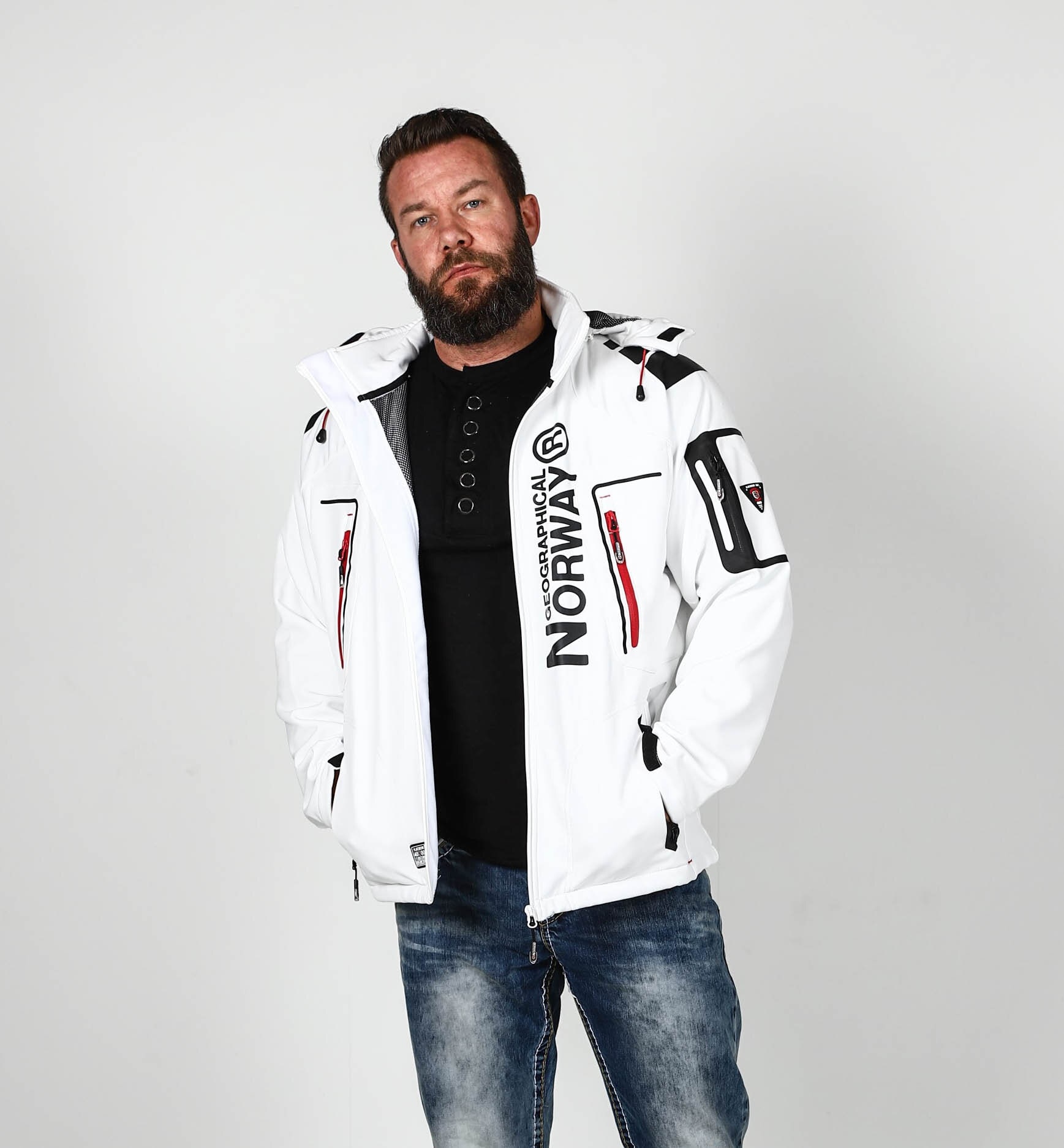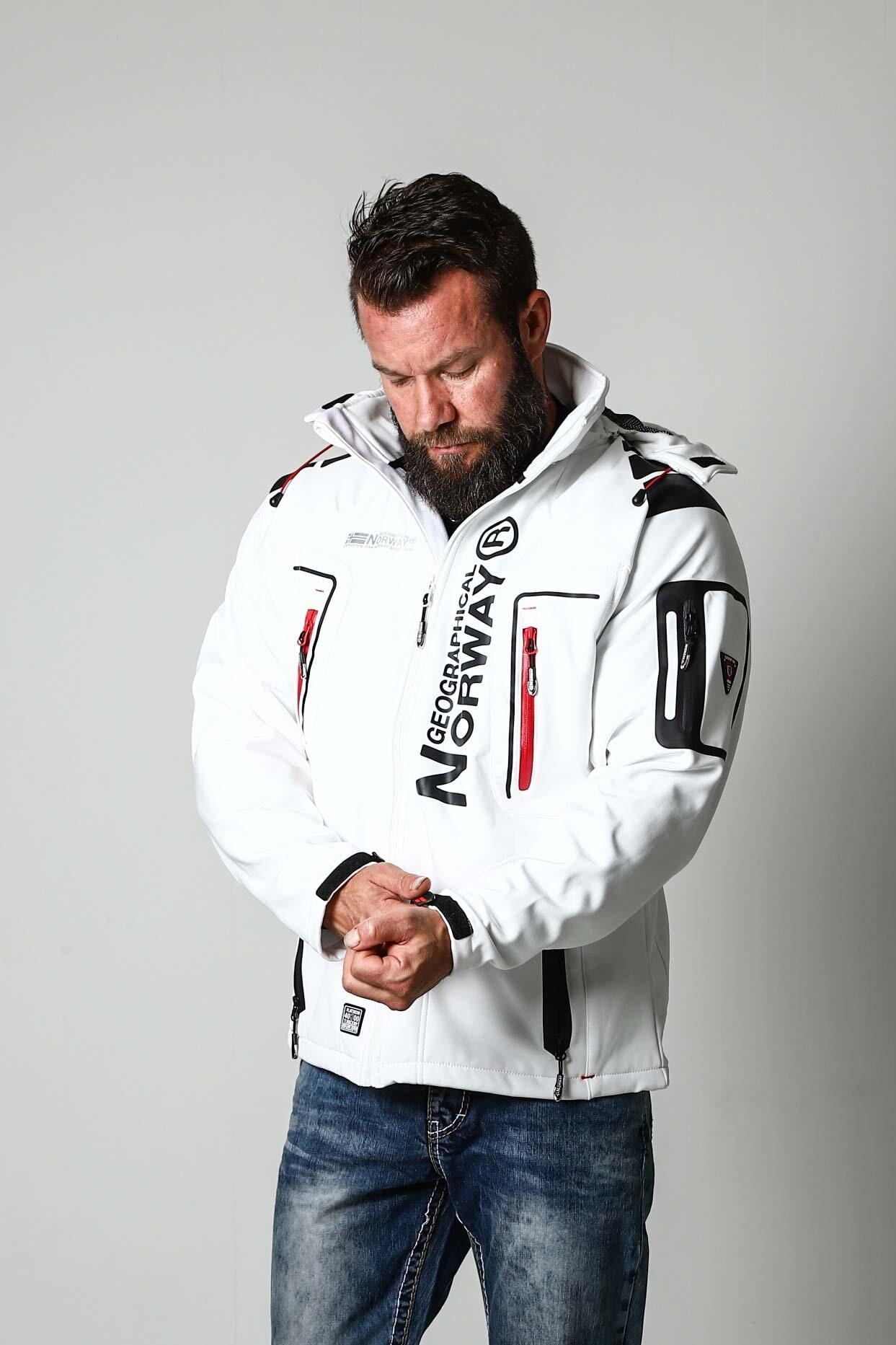 Denne outfiten er skreddersydd for den moderne mannen som krever både ytelse og stil. Med en kombinasjon av tekniske materialer og klassisk denim, er du klar for hva som helst.