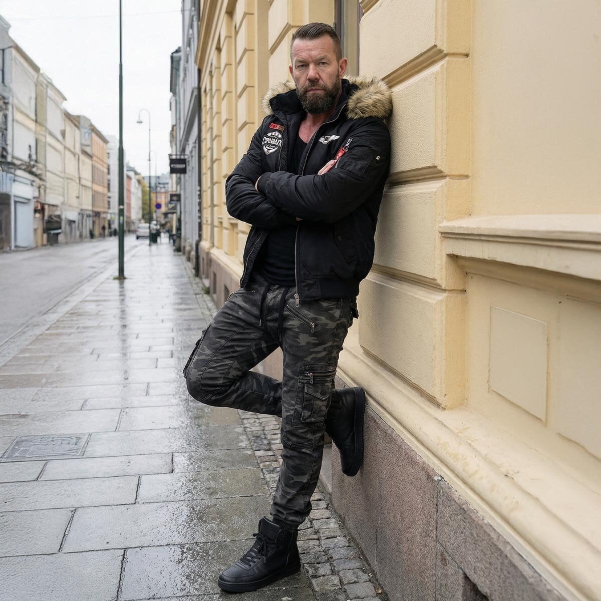 Er du ute etter et antrekk som kombinerer tøff attitude med moderne komfort? Dette settet er satt sammen for mannen som vil synes i mengden og som krever kvalitet i hver minste detalj. Her møtes militærinspirert estetikk og førsteklasses streetwear.